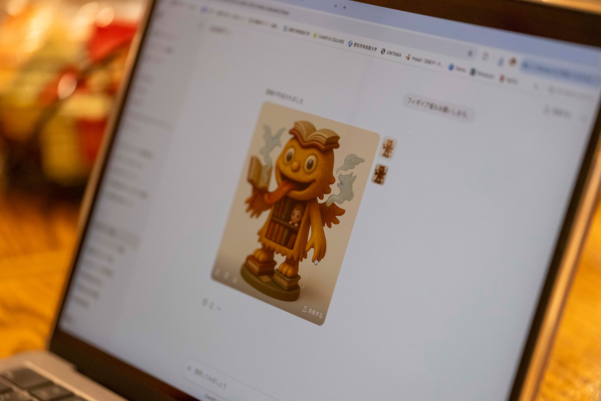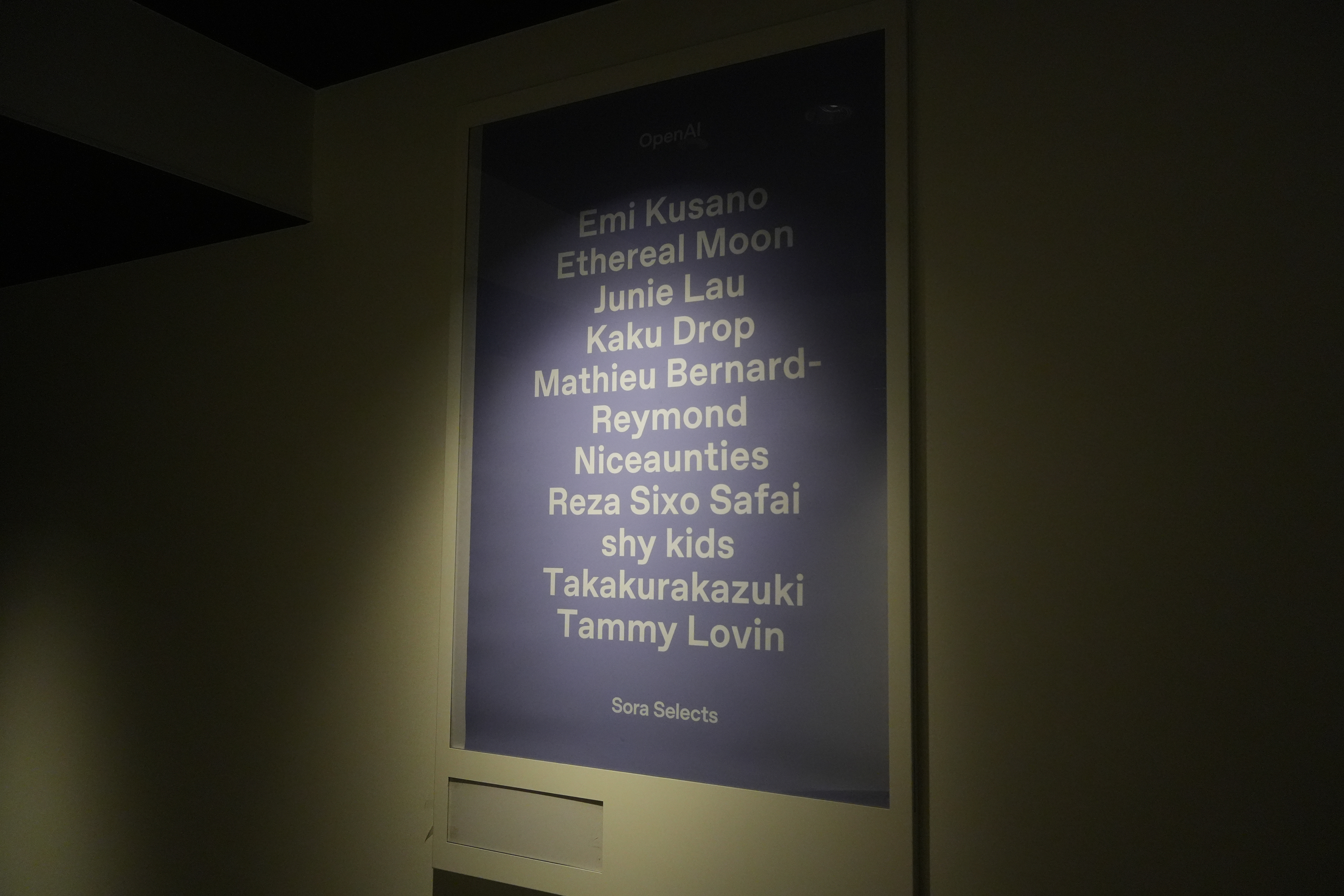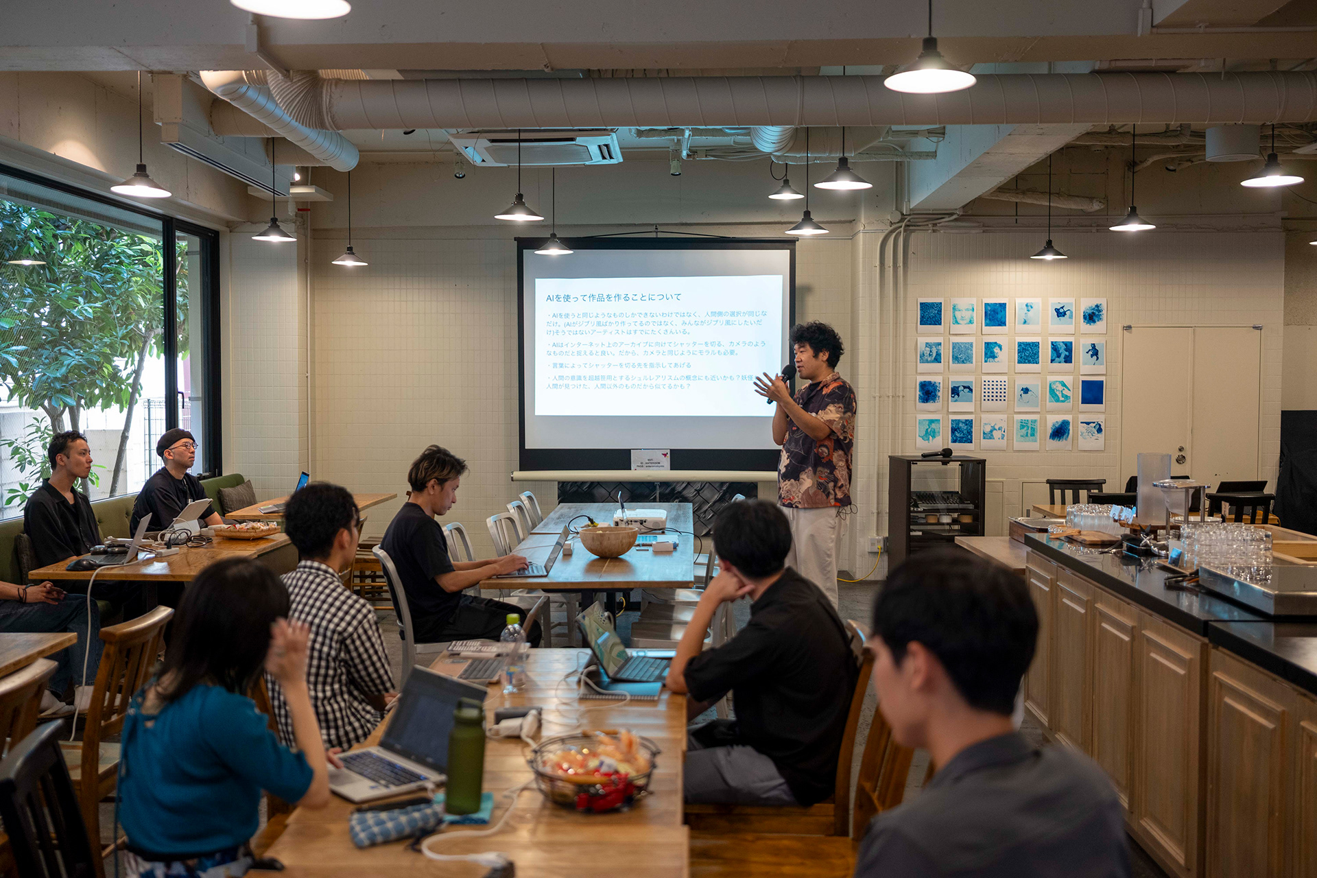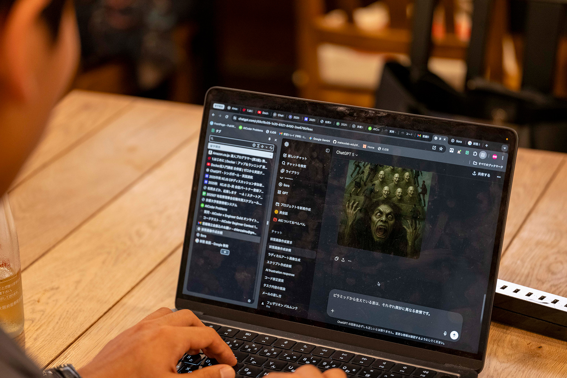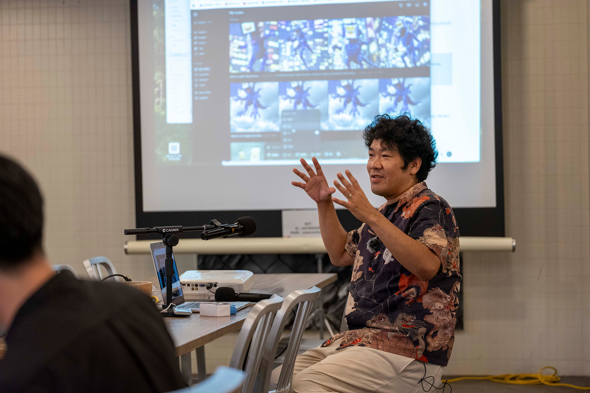 フェローとしての活動の一環として、ホテルアンテルーム京都にて Sora 公式ワークショップを企画・実施した。たかくらが講師を務め、参加者にAIを用いた妖怪の制作方法をレクチャーし、各自が制作した妖怪を発表する形式で行われた。ワークショップは二つのフェーズで構成され、①ChatGPTを用いて妖怪の設定を考え、画像を生成する工程、②その画像をもとに Sora で映像を制作する工程を通して、AIによる妖怪制作のプロセスを体験する内容となっている。
