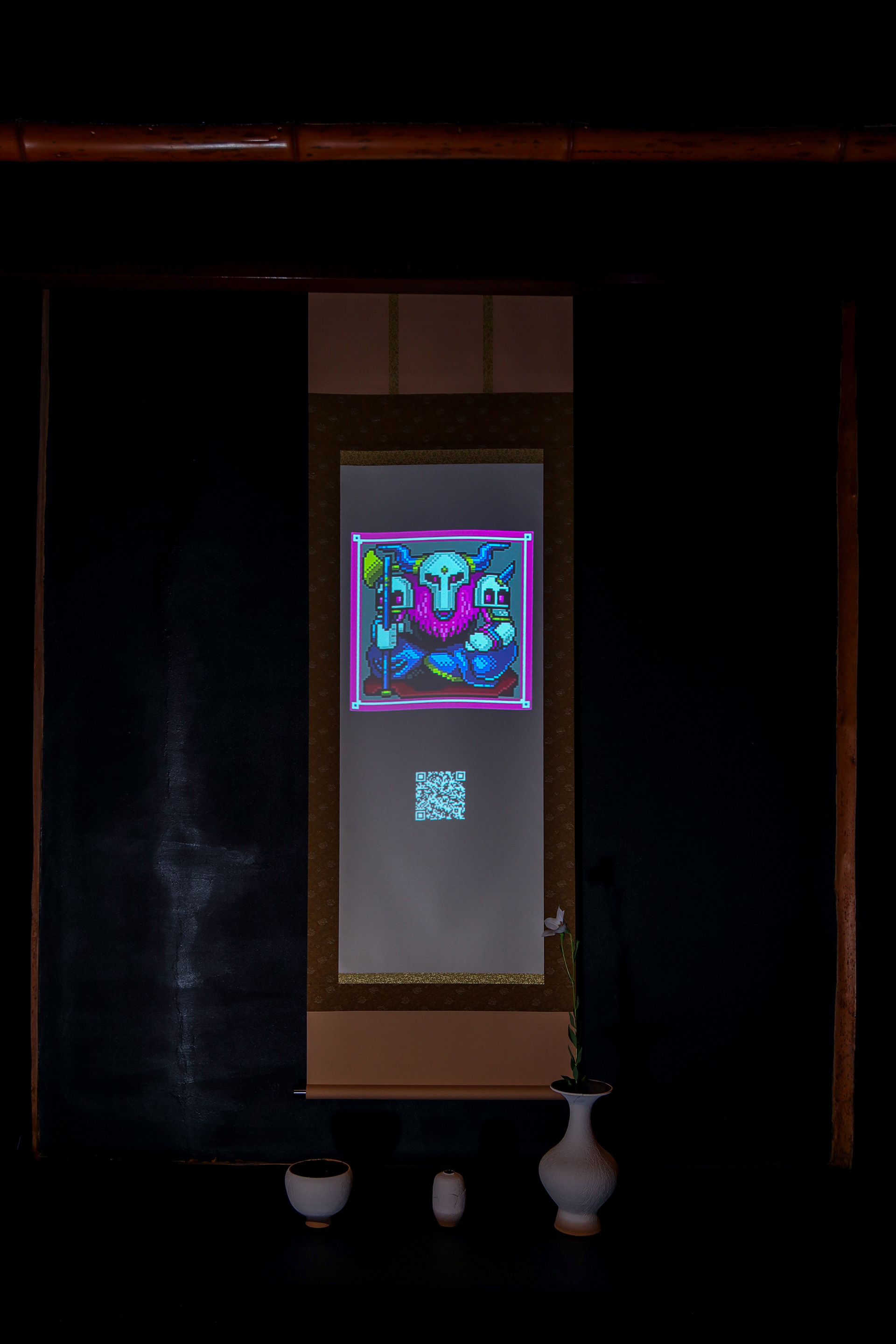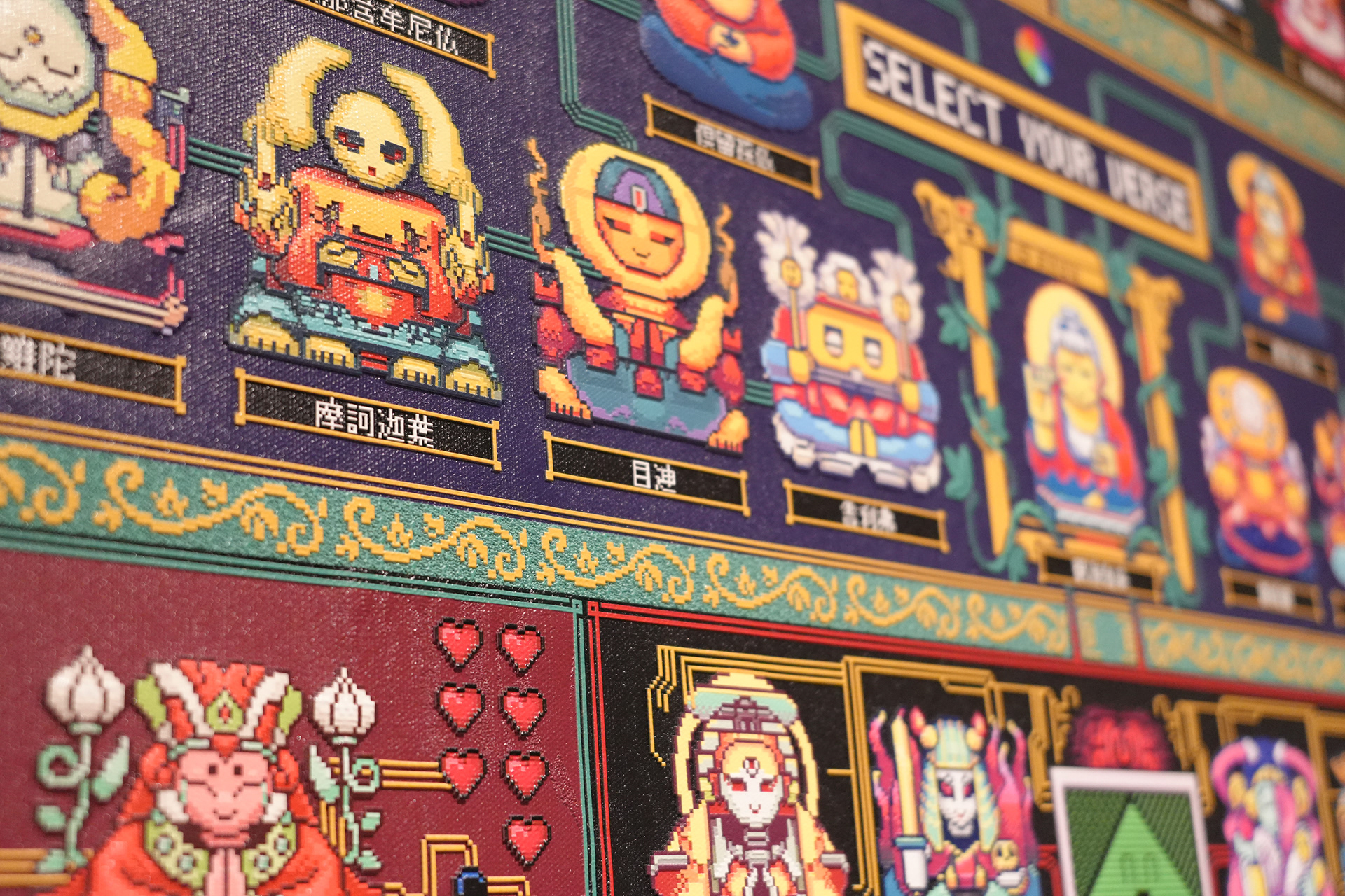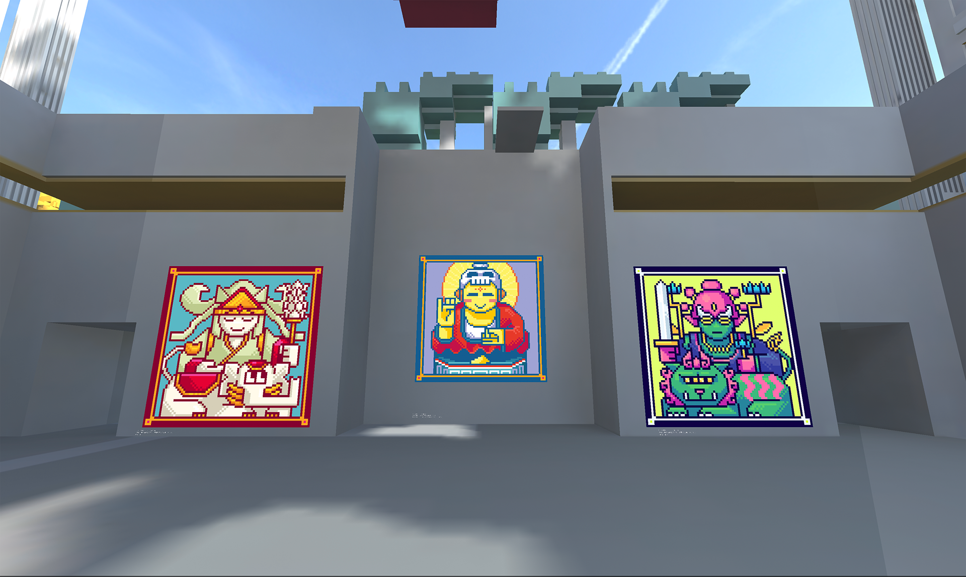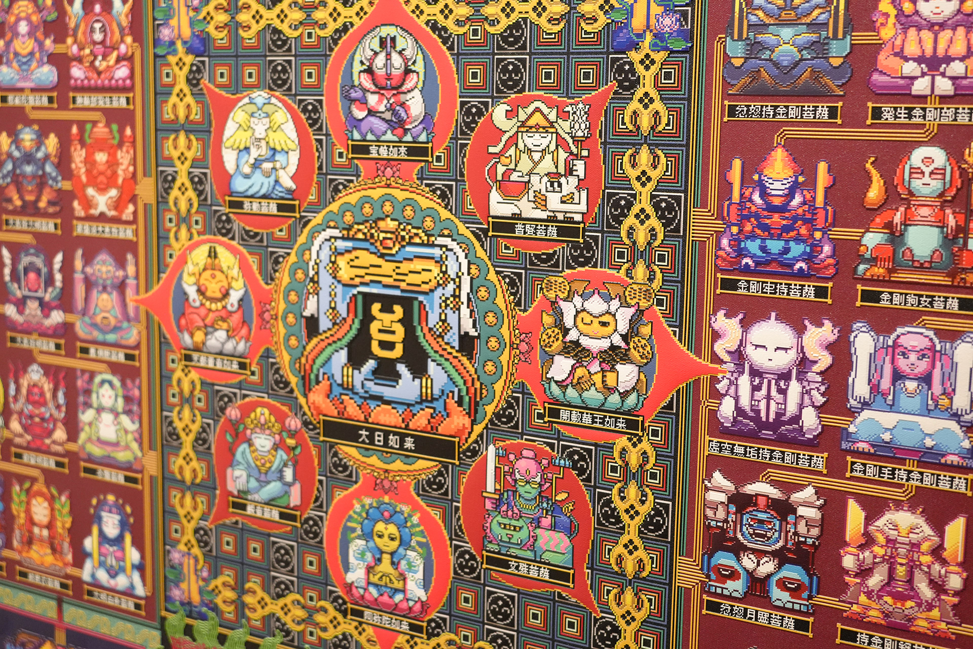 Each character retains elements such as the original Buddha it derives from and its mudra, while dramatically transforming visual aspects such as form and color to create contemporary interpretations of Buddhist figures. The initial character designs were preserved on the blockchain and became the foundation for later production. From these characters, the BUDDHA VERSE series expanded into multiple formats, including canvas works, hanging scrolls, and virtual exhibitions.