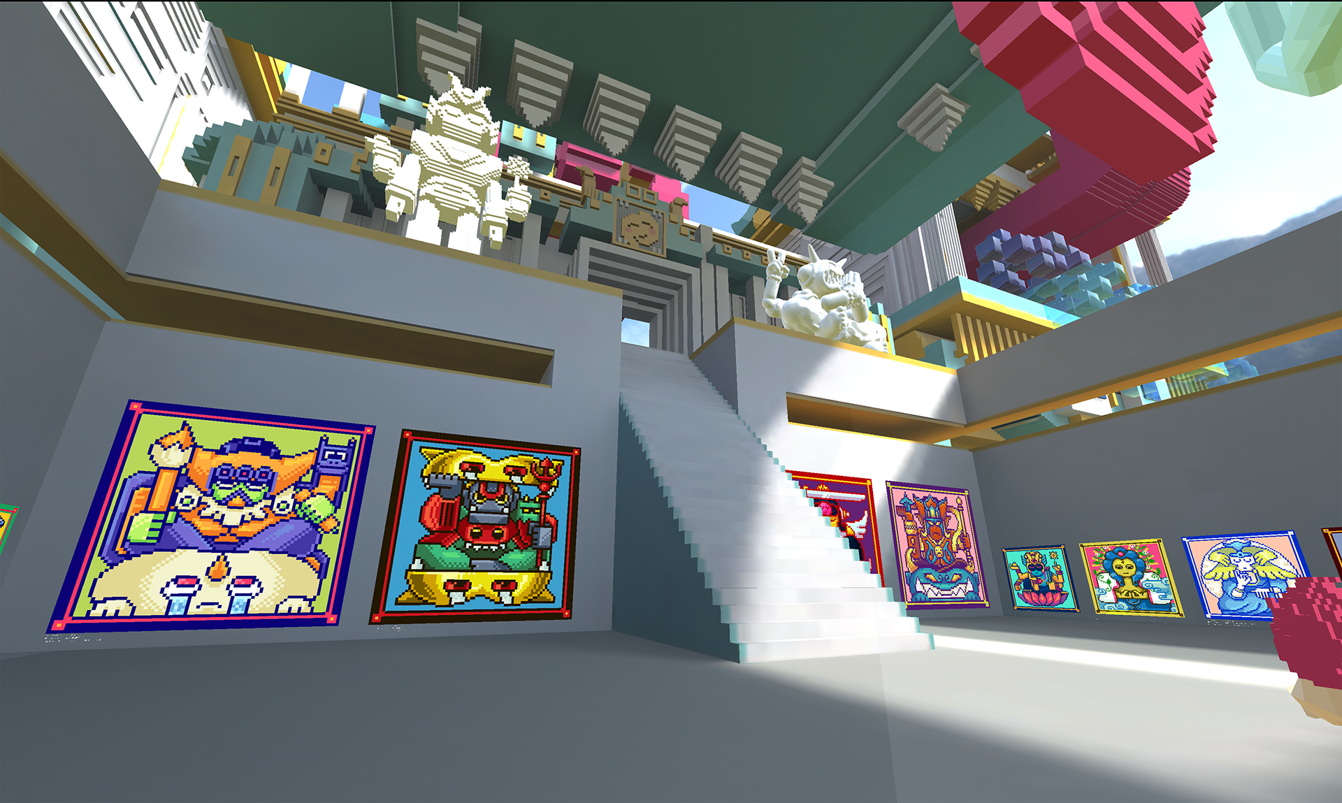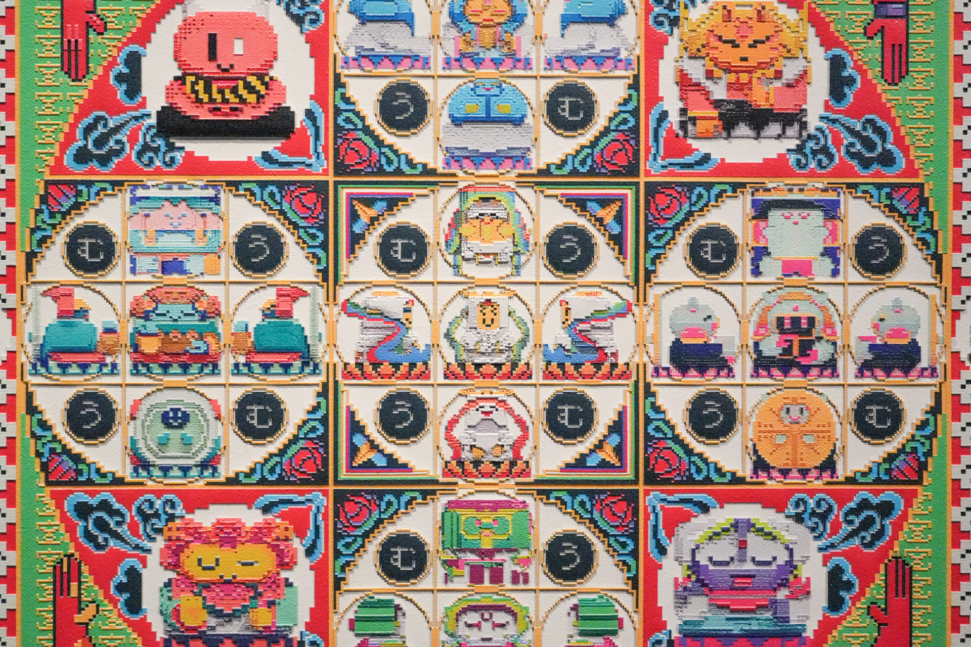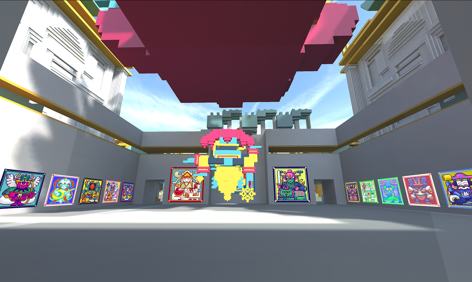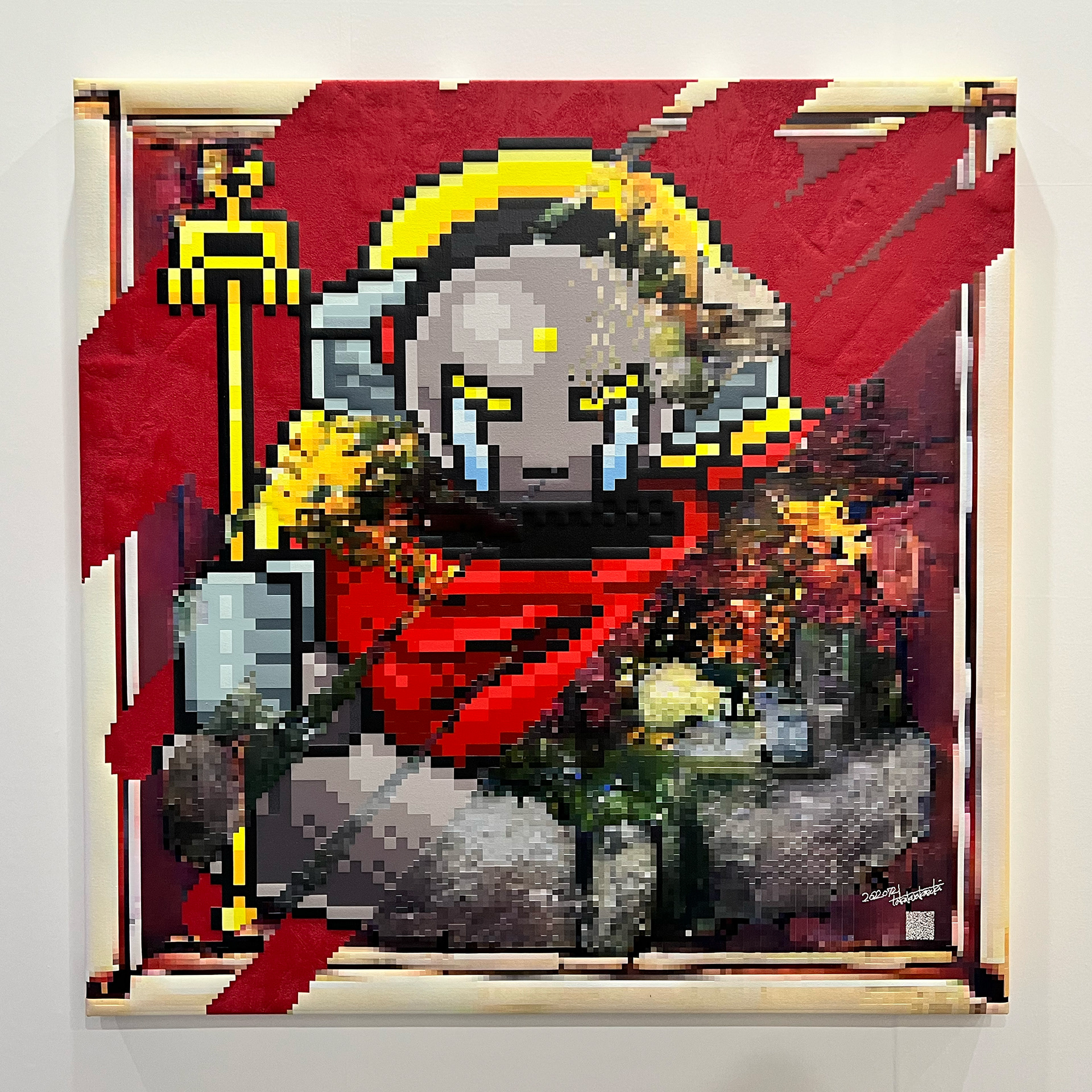 Each character retains elements such as the original Buddha it derives from and its mudra, while dramatically transforming visual aspects such as form and color to create contemporary interpretations of Buddhist figures. The initial character designs were preserved on the blockchain and became the foundation for later production. From these characters, the BUDDHA VERSE series expanded into multiple formats, including canvas works, hanging scrolls, and virtual exhibitions.