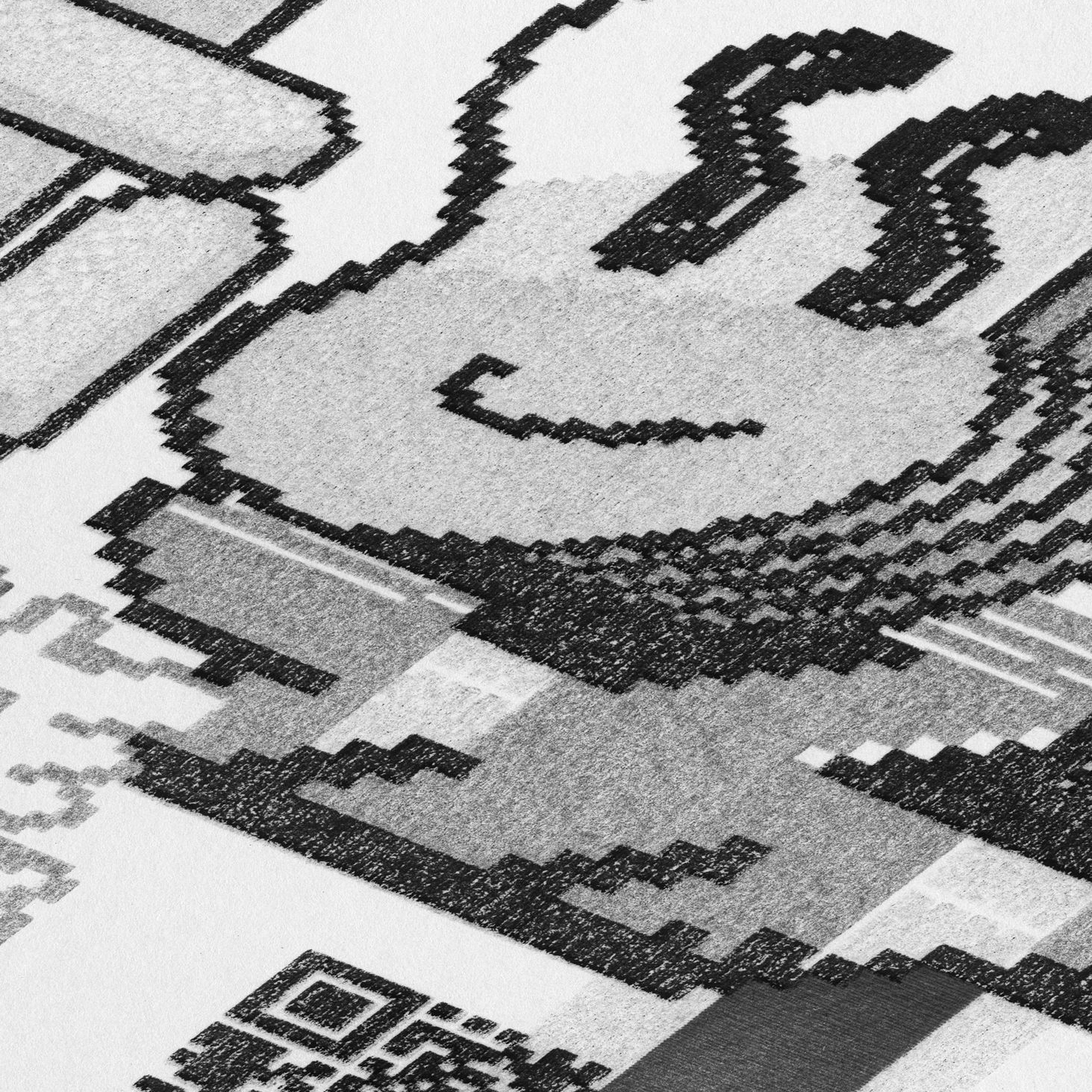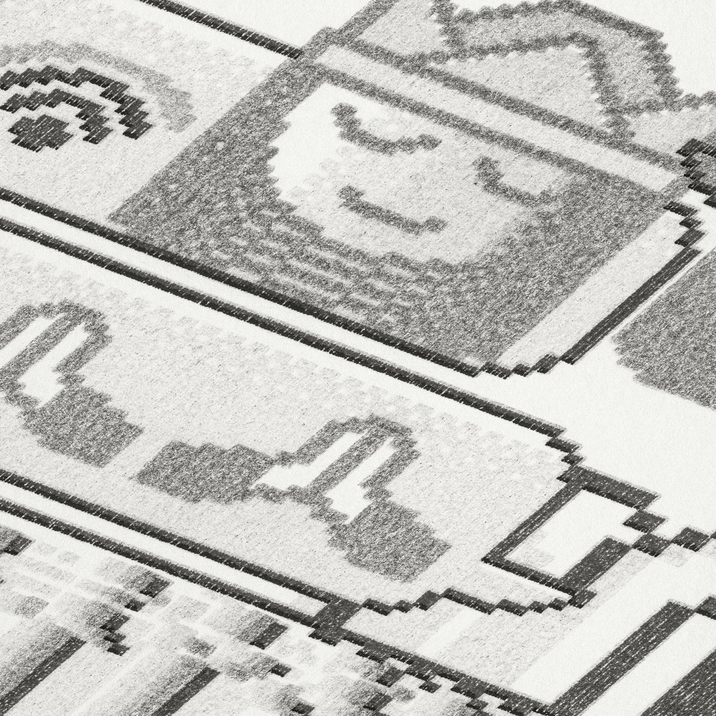 A canvas series that reconstructs and recombines AI-generated similar images with the original source images, taking the characters from NFT BUDDHA as its point of departure. Moving back and forth between human acts of drawing and viewing, and AI processes of recognition and generation, the work repositions Buddhist imagery as a post-human visual apparatus situated between humans and machines.