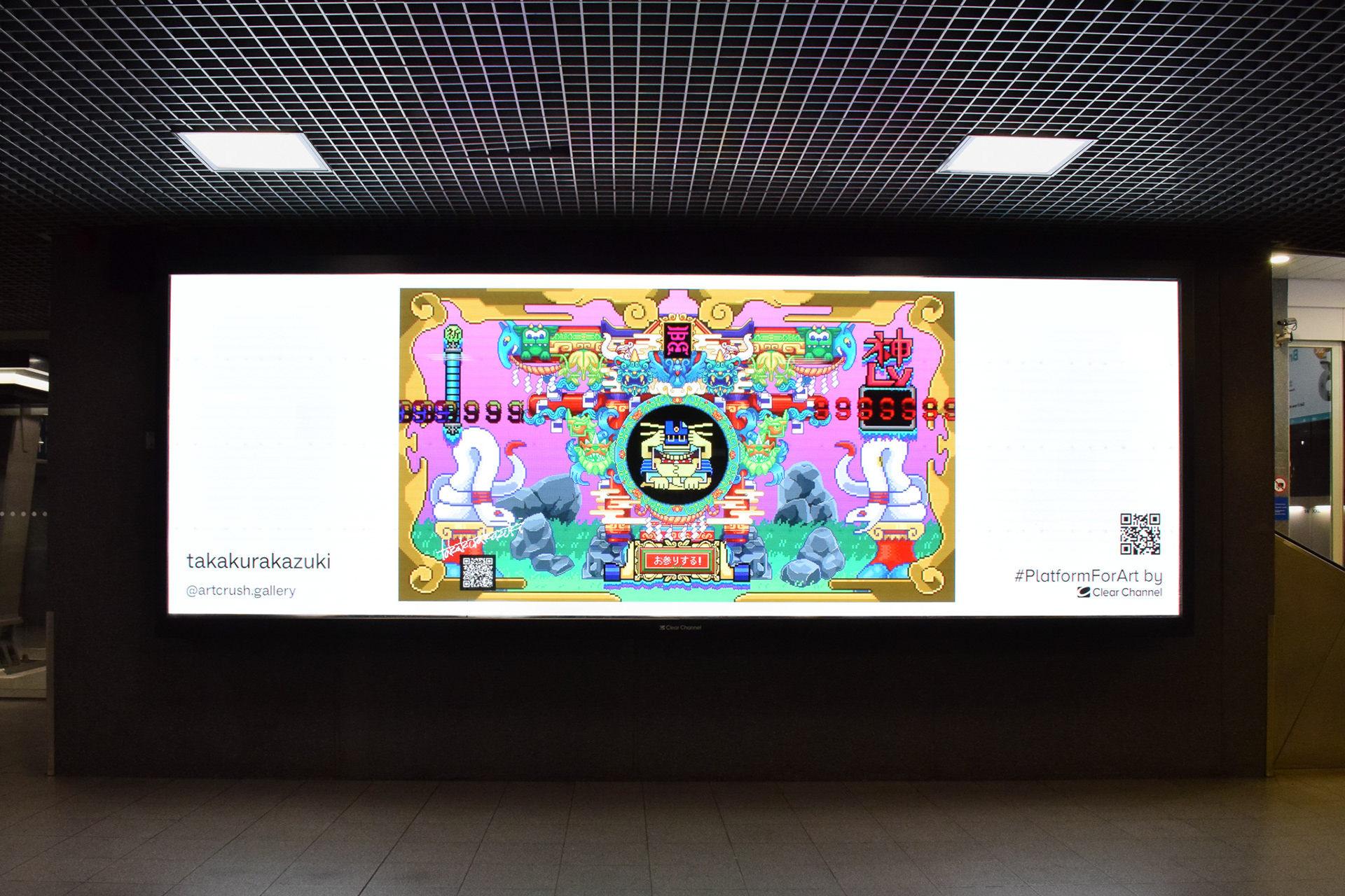 HYPER SHRINE NFT was created as the foundational digital collection of the Hyper Shrine Project. Using NFTs as its starting point, the collection is designed as a system that connects multiple forms of content across online shrines, exhibitions, and physical objects. Owners of the NFTs can enshrine their own KAMI within a browser-based online shrine. By sharing the shrine’s URL, they can receive acts of worship from others. As the number of visits increases, the KAMI grow and transform in stages—from Myōjin to Daimyōjin, and ultimately to Ōmikami. The collection was also developed into a series in which NFT artworks were linked to amulets embedded with NFC chips, and it was exhibited on large-scale advertising LED screens overseas, including in Poland.
