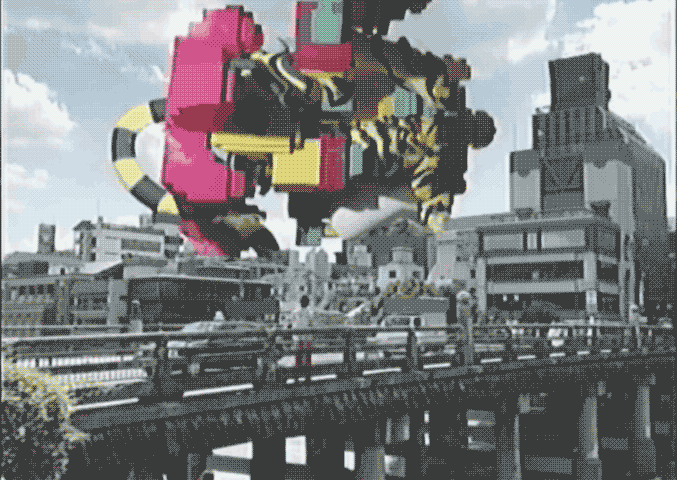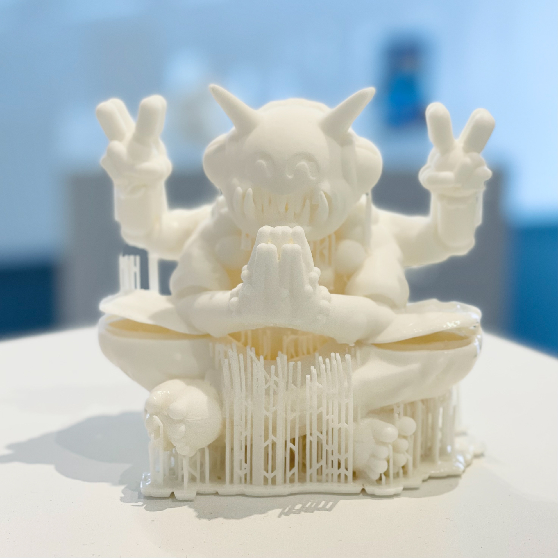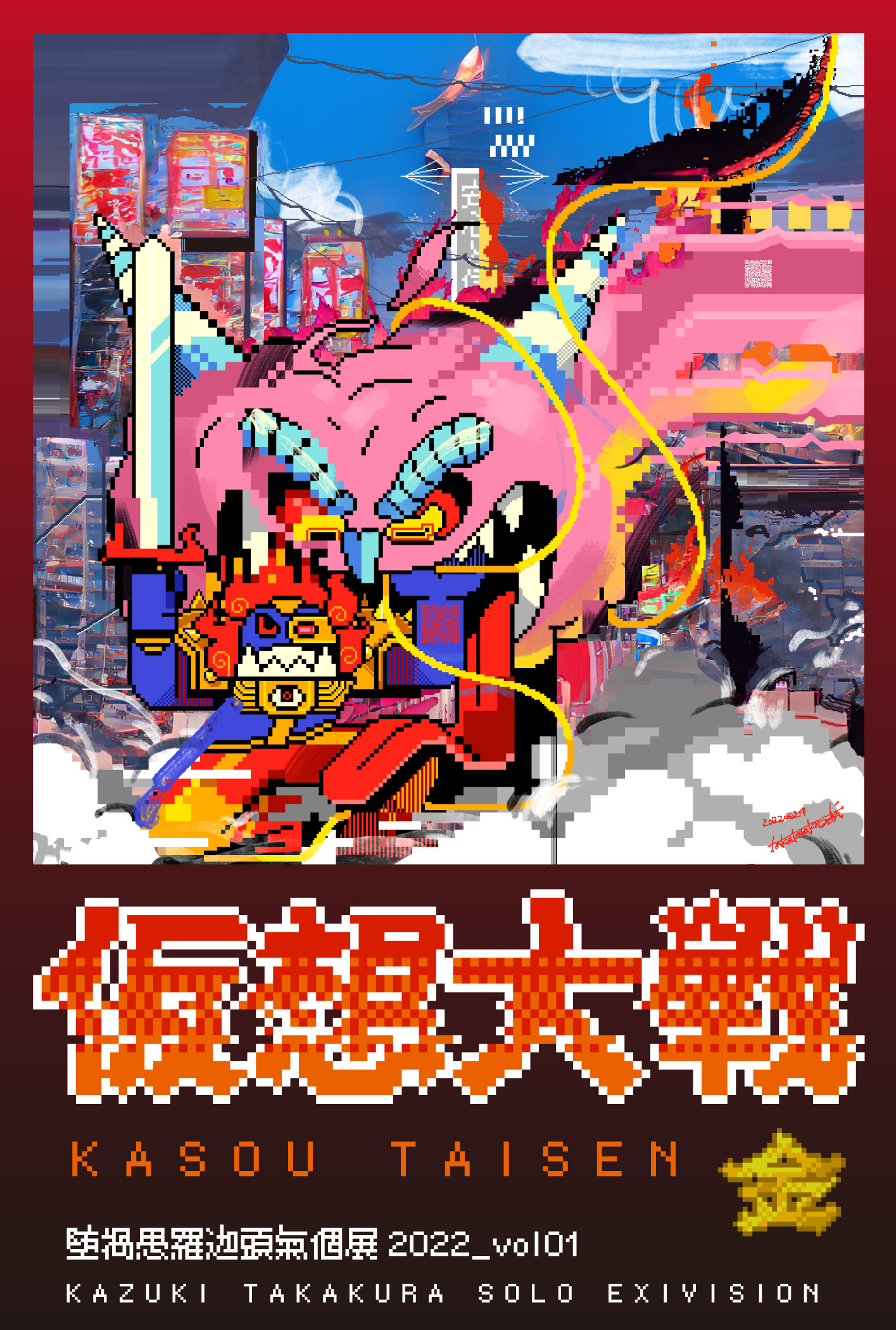 A body of work taking tokusatsu kaiju films as its motif, drawing on Buddhist statue and yokai characters developed throughout the artist's practice. The series repositions Buddhist imagery and yokai as distinctly Japanese character archetypes, presented across 3DCG, pixel animation, and canvas works.