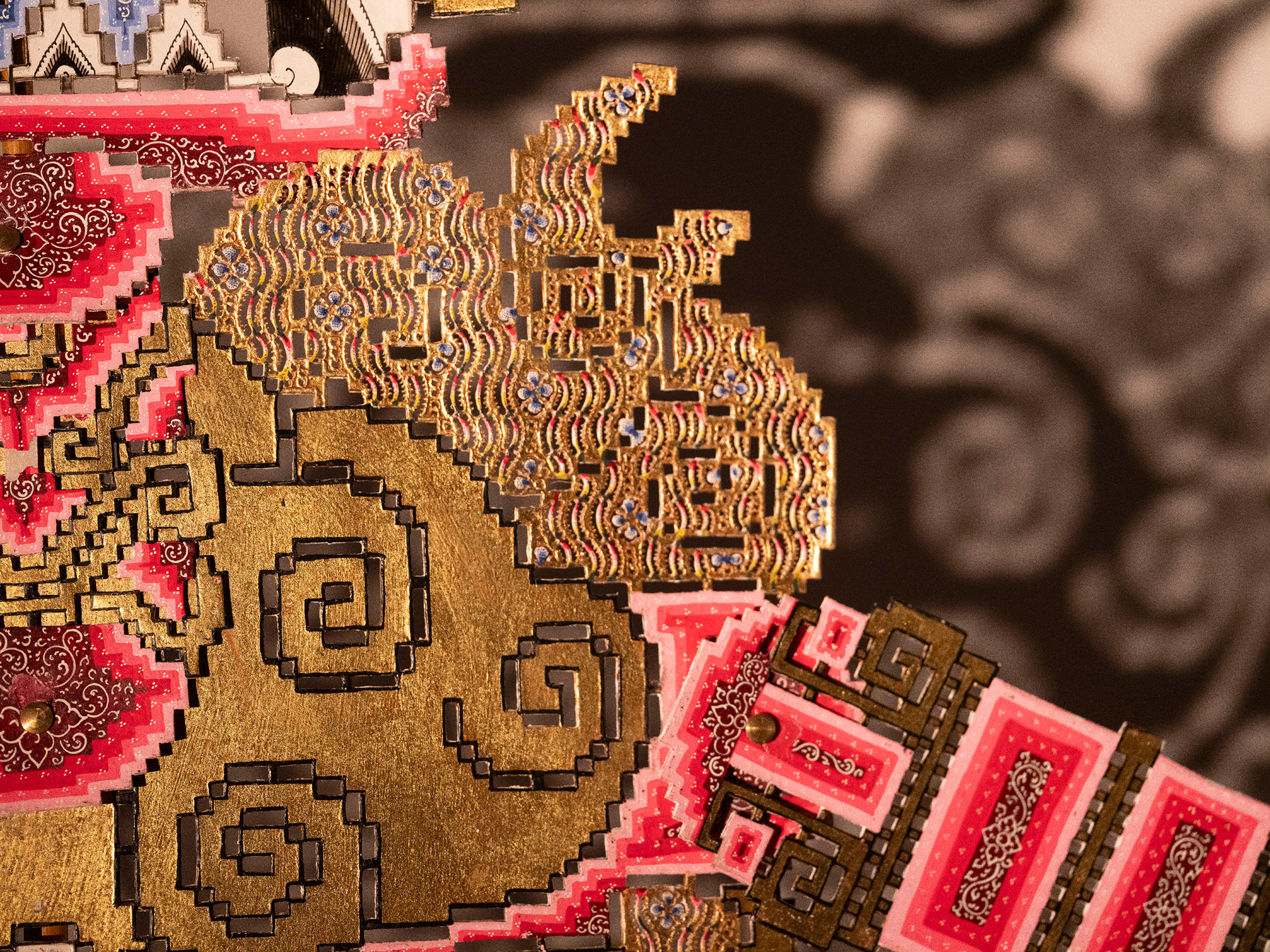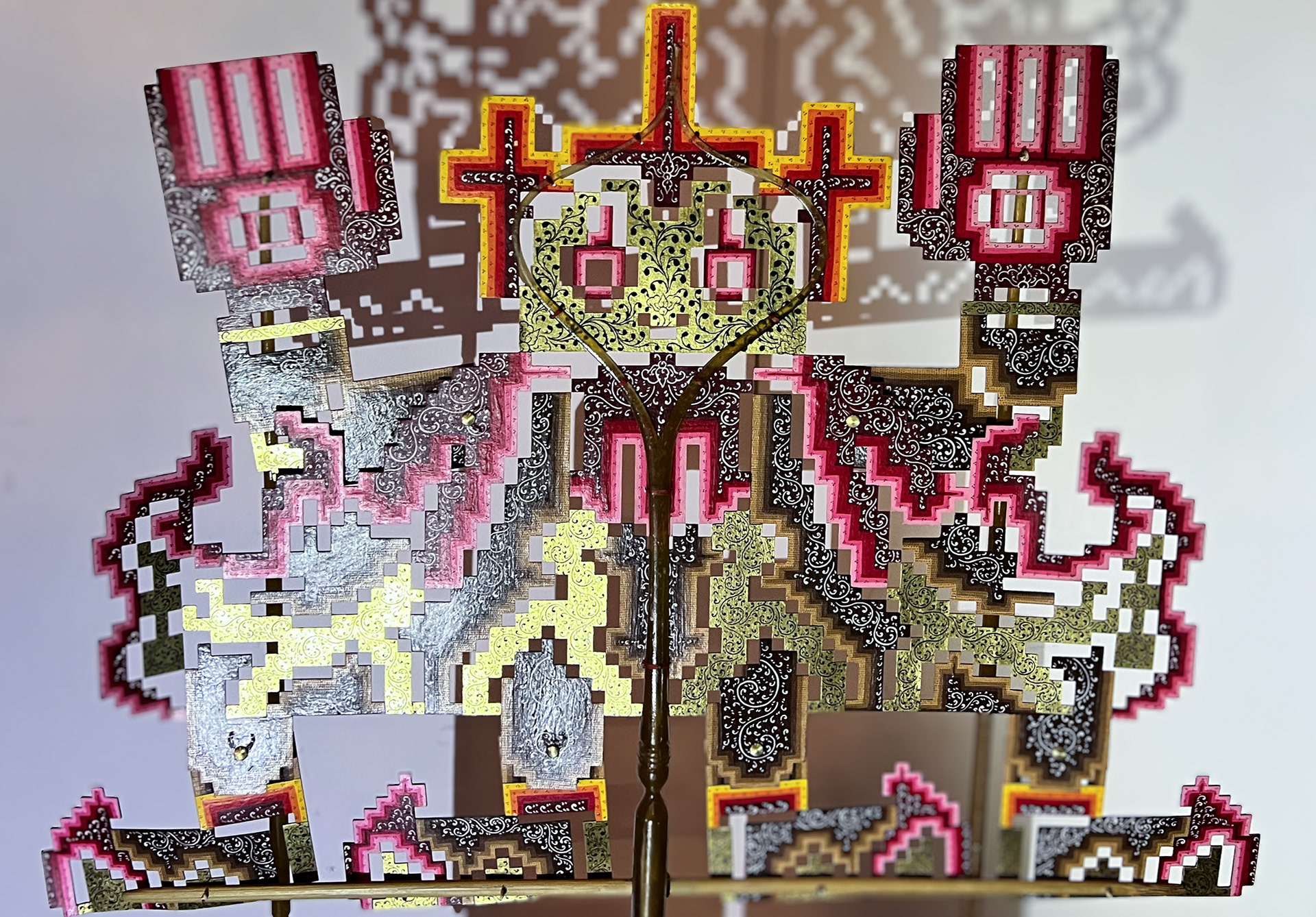 It is a collaborative work between Takakurakazuki and Ananto Wicaksono, a craftsman and performer of traditional Indonesian shadow puppetry (wayang kulit).