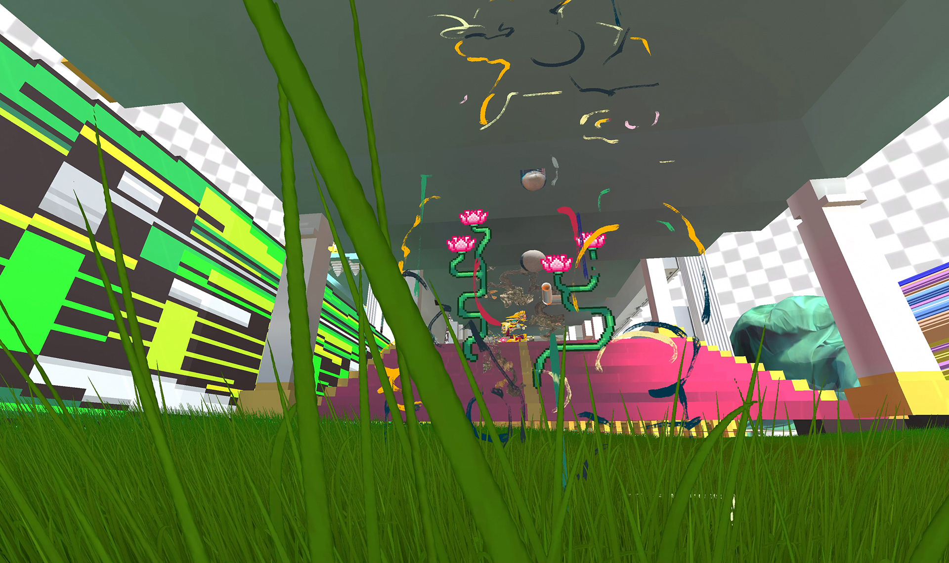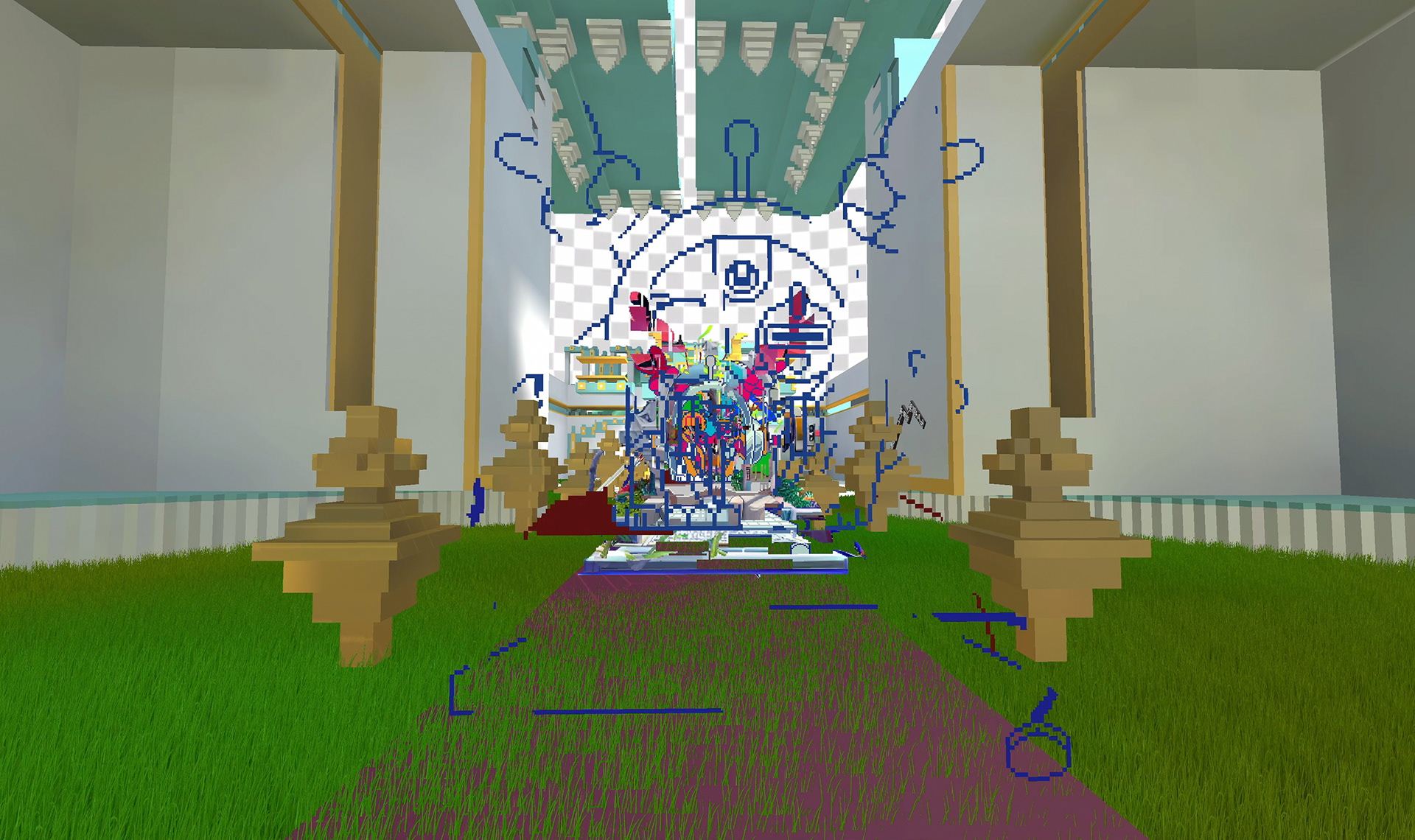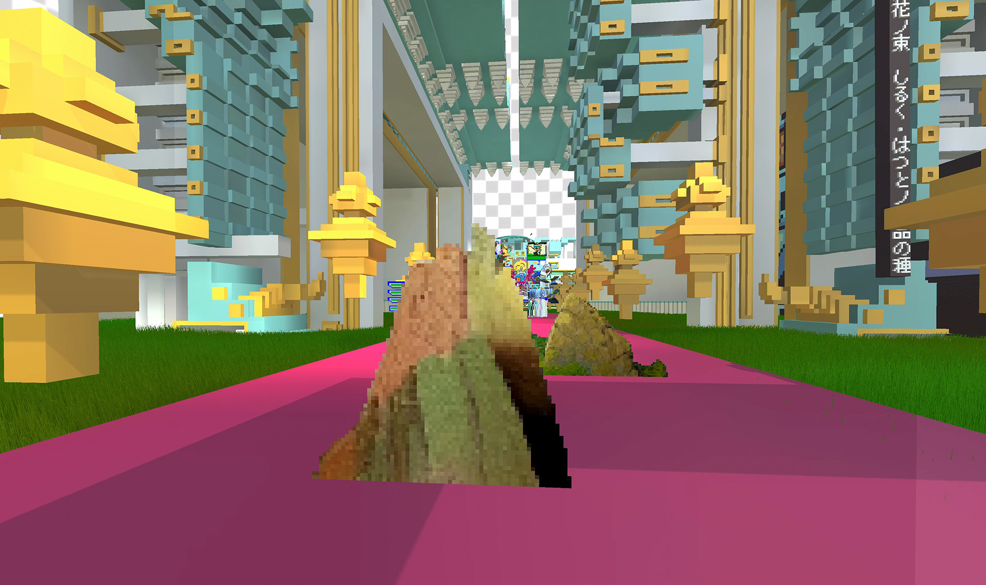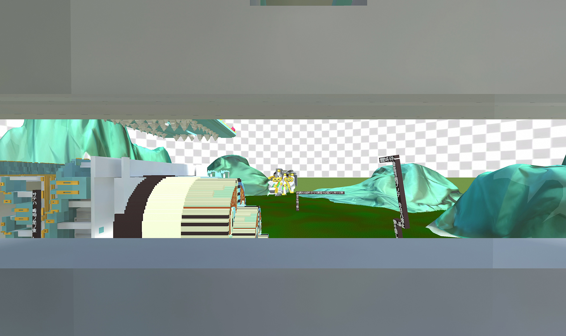 Viewers can access the VR exhibition Mechareal online. While sharing themes and motifs with the physical Mechareal, this exhibition reconstructs the data to unfold as an independent space unique to the digital realm. In addition, ten QR codes are installed throughout the garden of the Yamanashi Prefectural Museum of Art. By walking through the garden and scanning them with a smartphone, visitors can acquire digital artworks inspired by Dōsojin, traditional roadside deities.