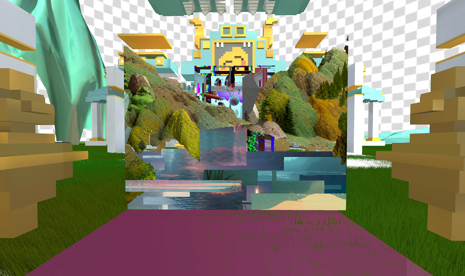 たかくらは、日本で広く共有されてきた信仰に見られる「存在を信じながらも触れることのできないもの」を、デジタル上の存在と重ね合わせて捉えてきた。AIによる画像生成、ピクセルアニメーション、3Dプリント、VR、NFTなどの技術を用い、それらを現代の表現として具体化している。本展では、機械と自然、現実世界と仮想空間、AIと人間、合理と不合理といった対立項のあいだに生じる関係性を横断し、デジタルとリアルの複数の空間を用いた新たなイメージの構成を試みた。