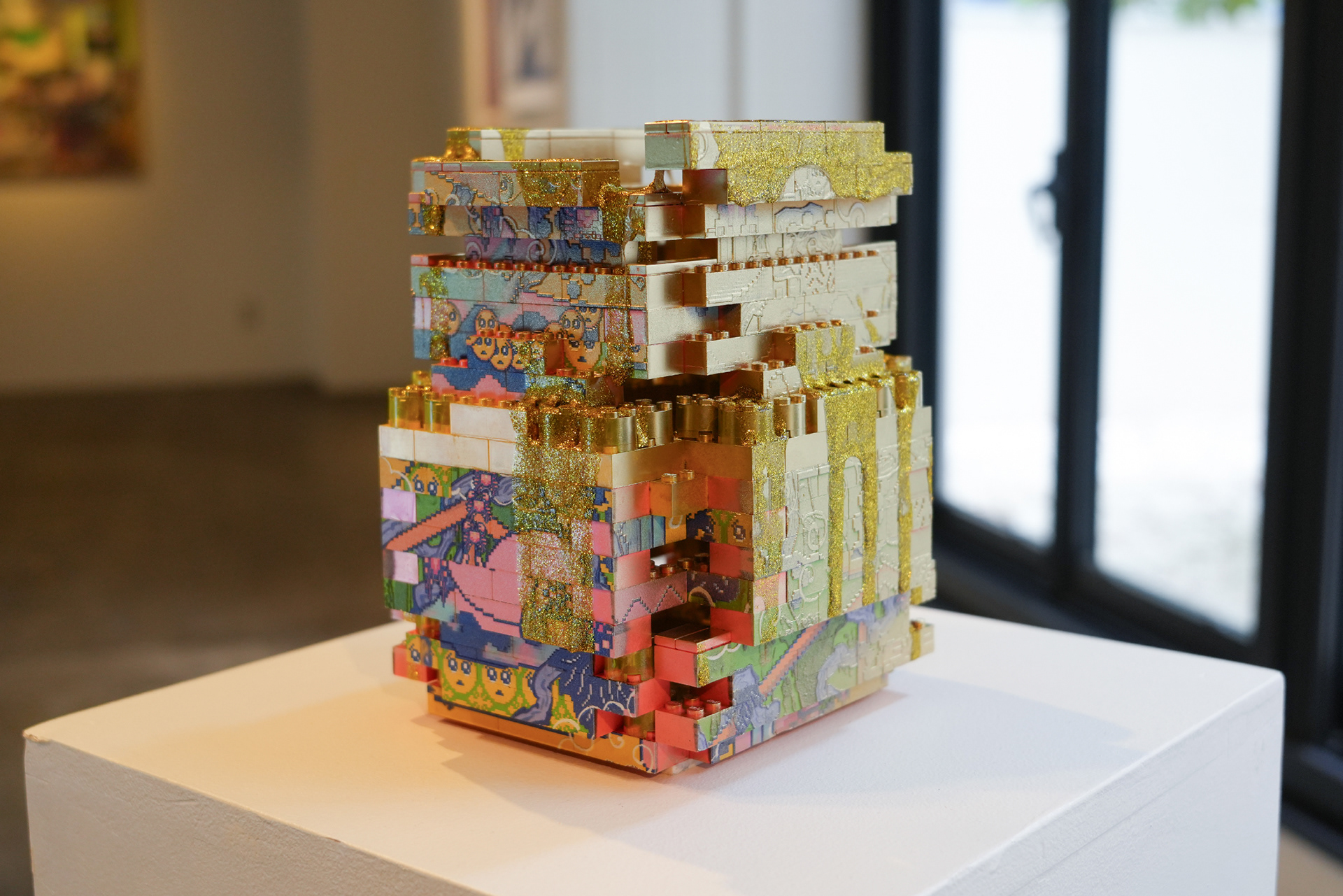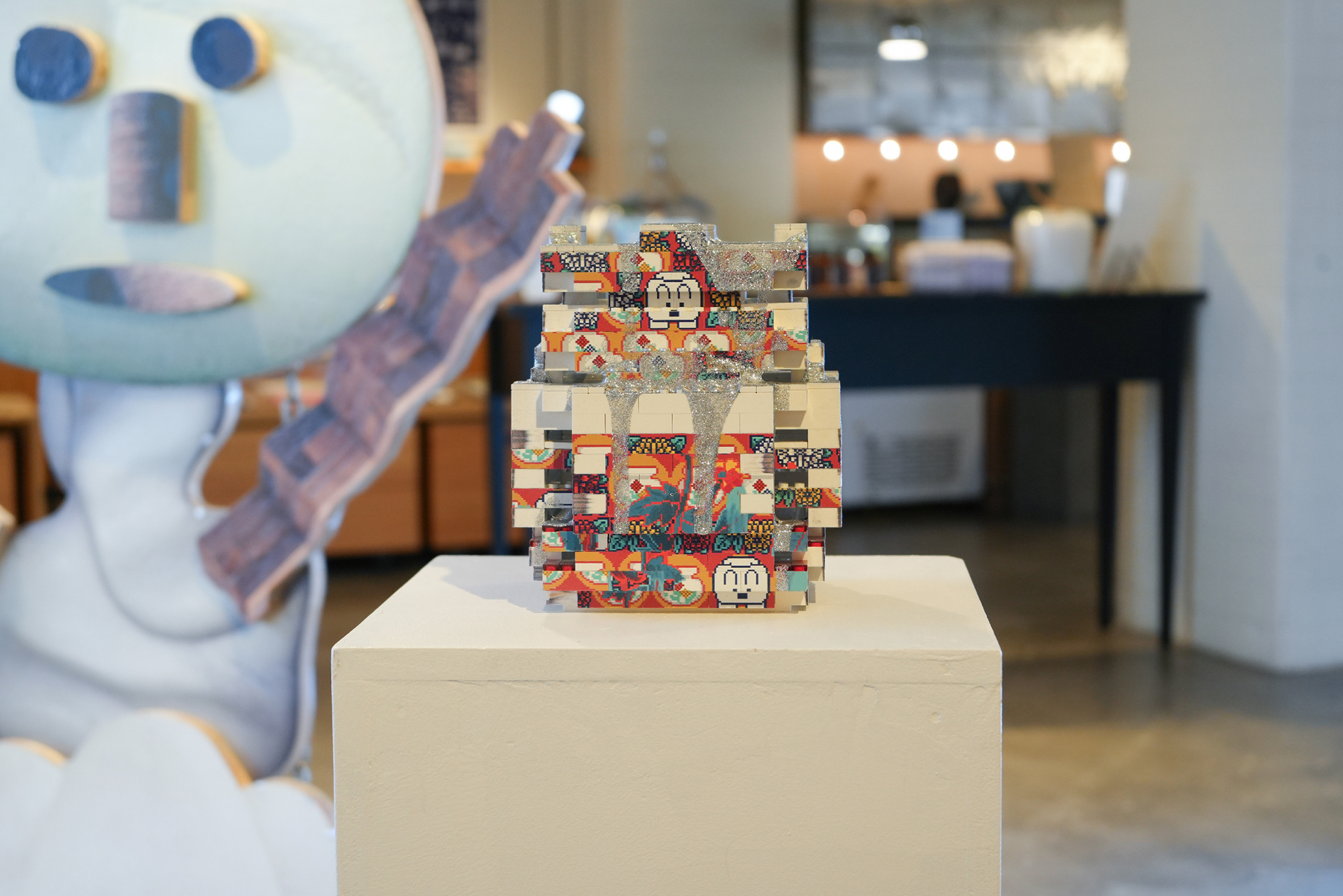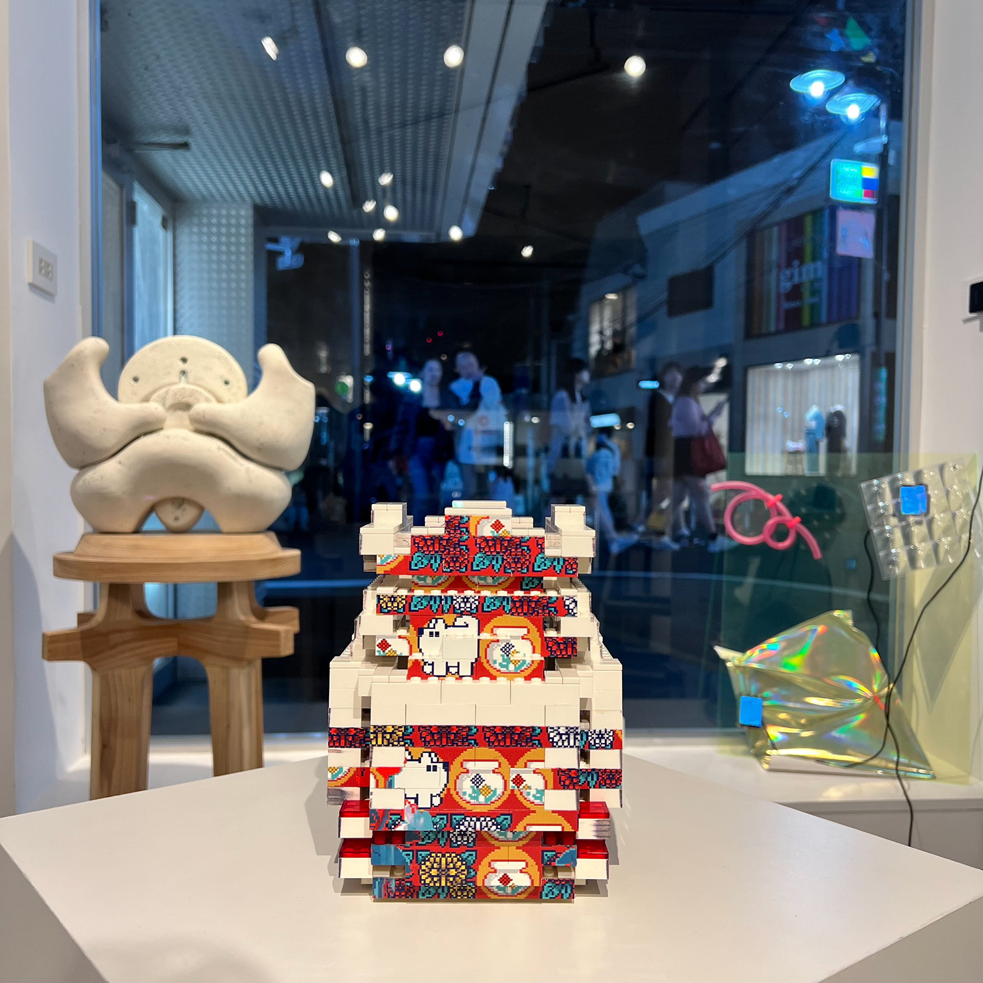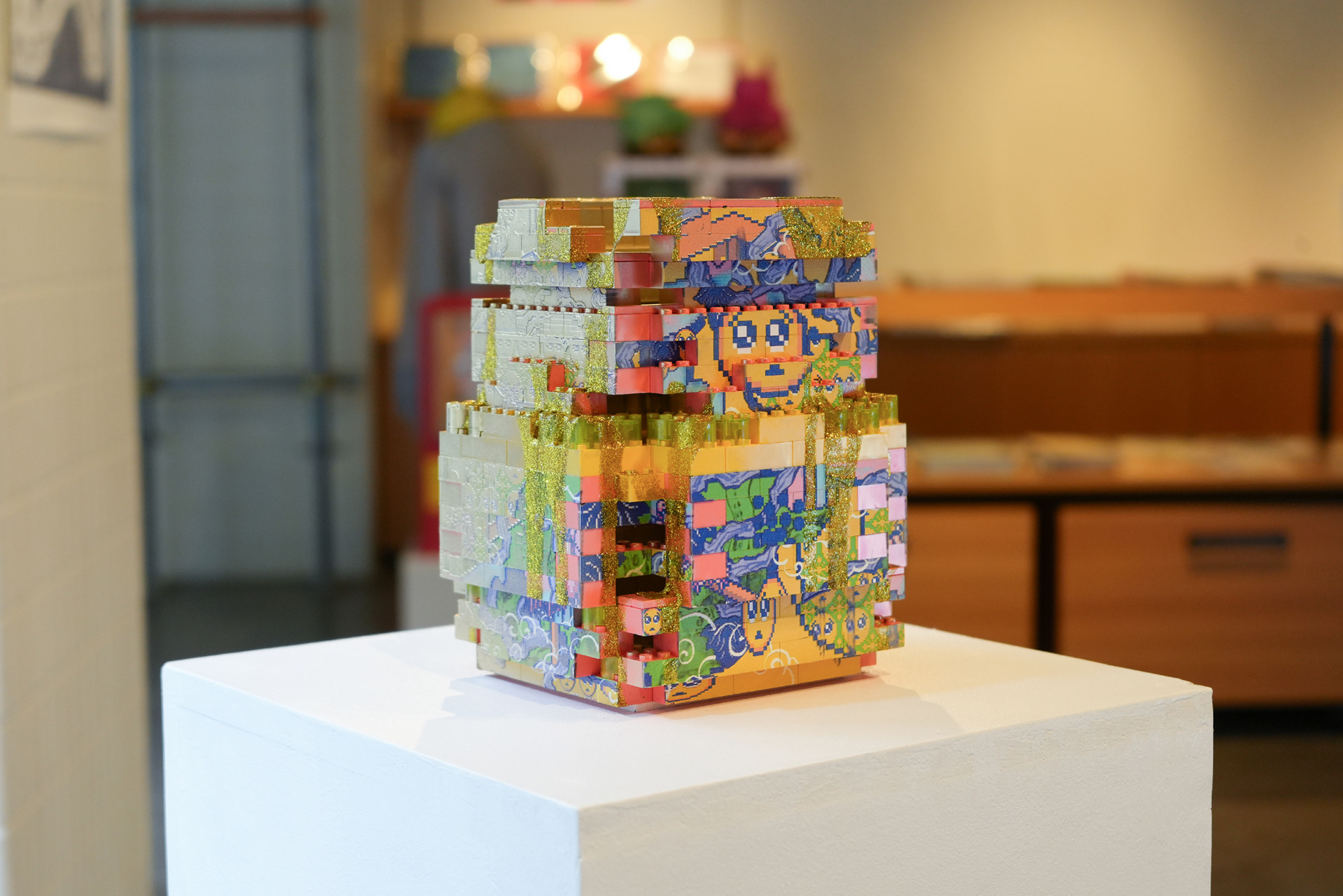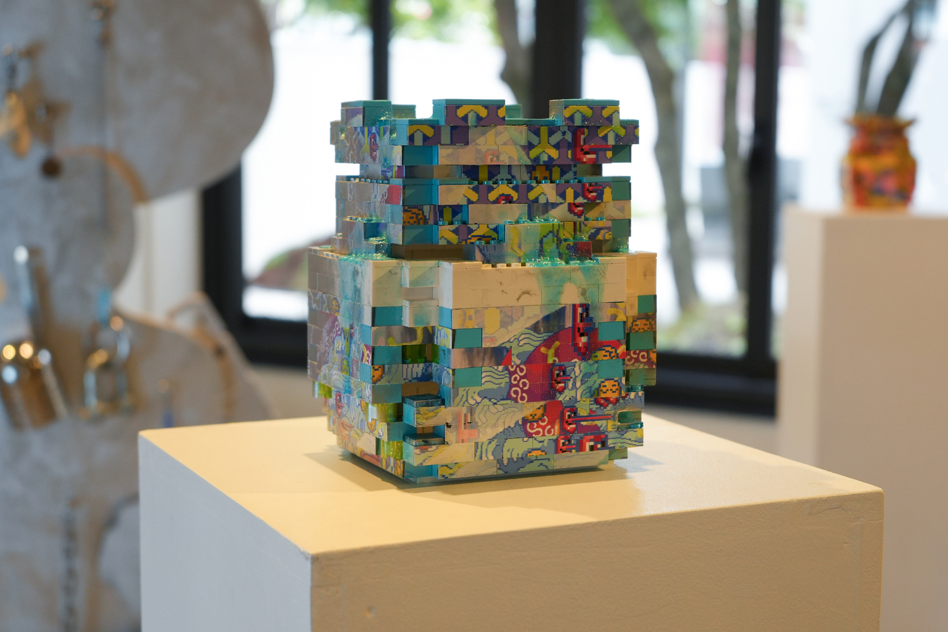 確定される前の『可能性の壺』は、2023年の企画展『本物の人工物』にて展示された。ブロックにUV出力を施し、それを組み上げて壺の立体を構成するシリーズで、展示中に作者自身によって一度破壊された。破壊の様子は、壺の内部に設置された小型プロジェクターから投影された。ブロックは破壊されても同様に組み直すことで完全に修復できるという、デジタルデータの特性と共鳴する可逆性を持つ。