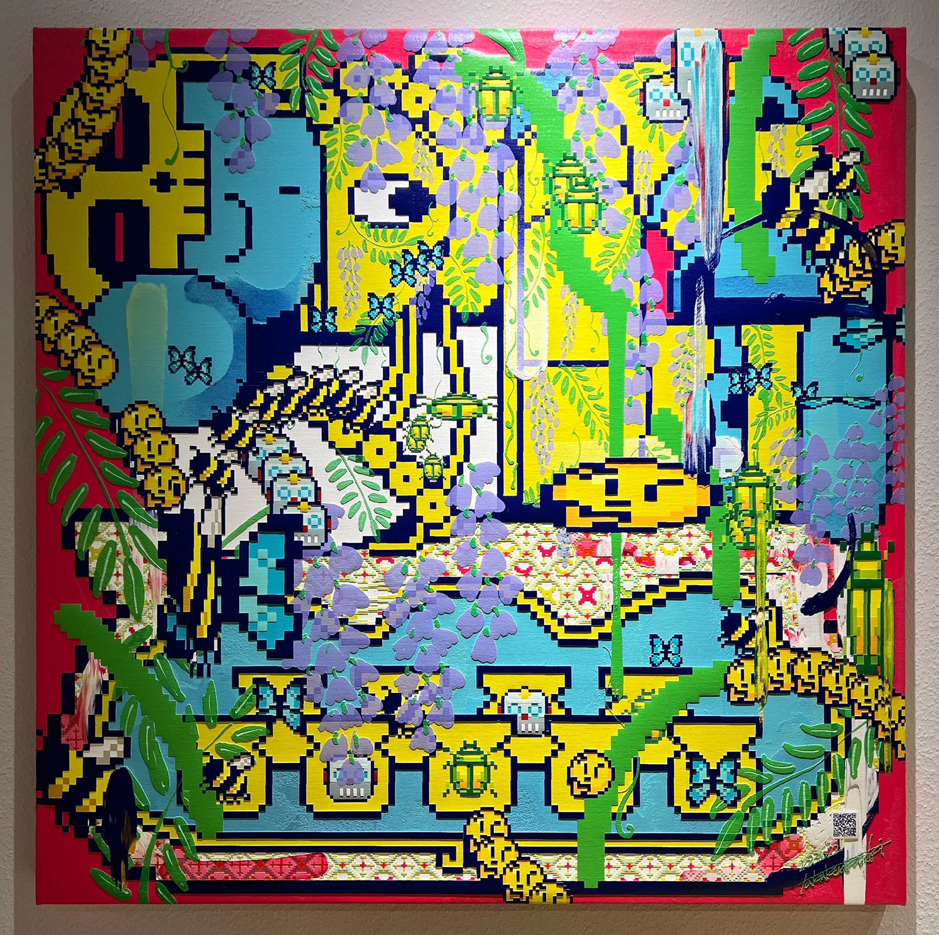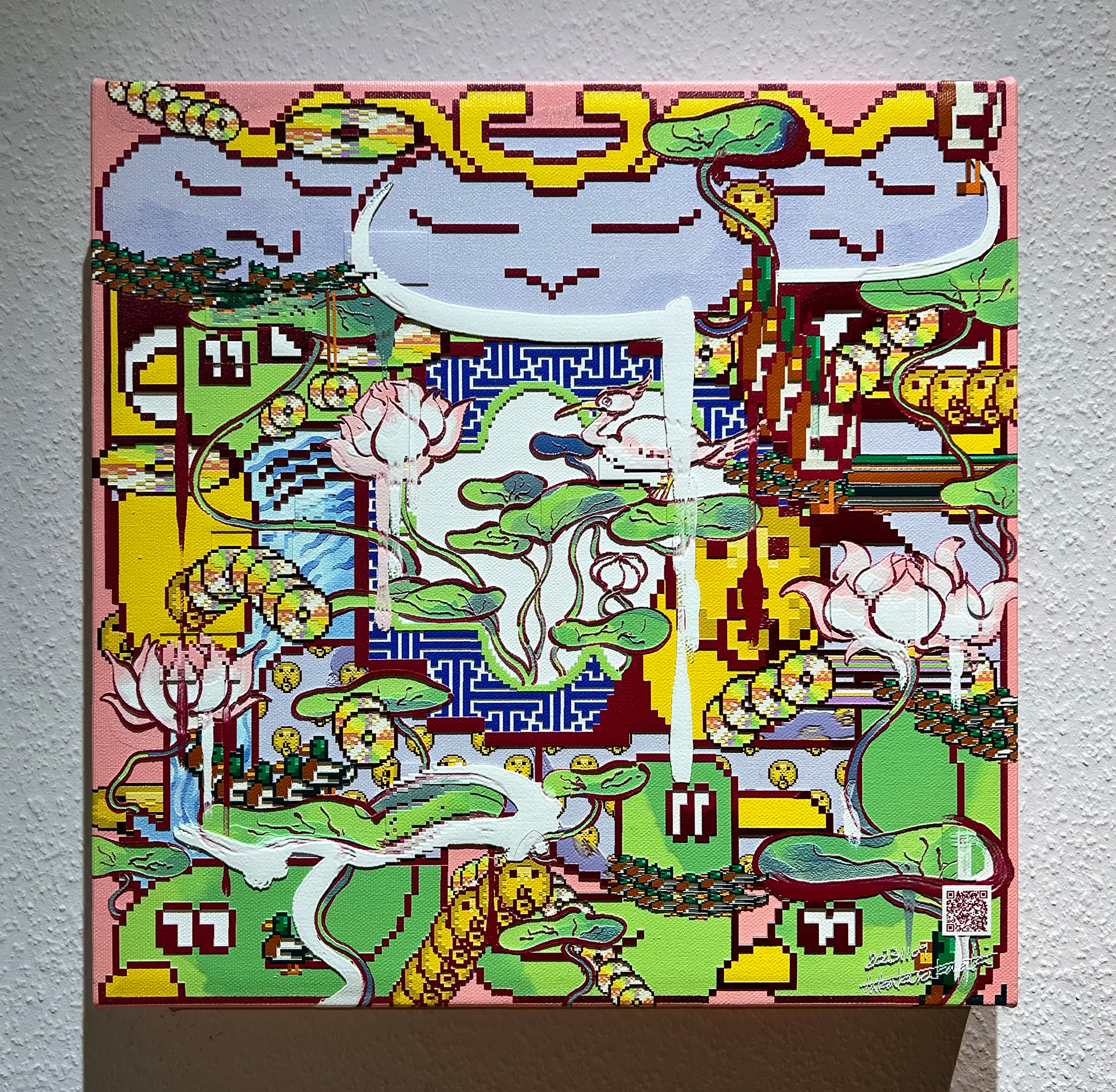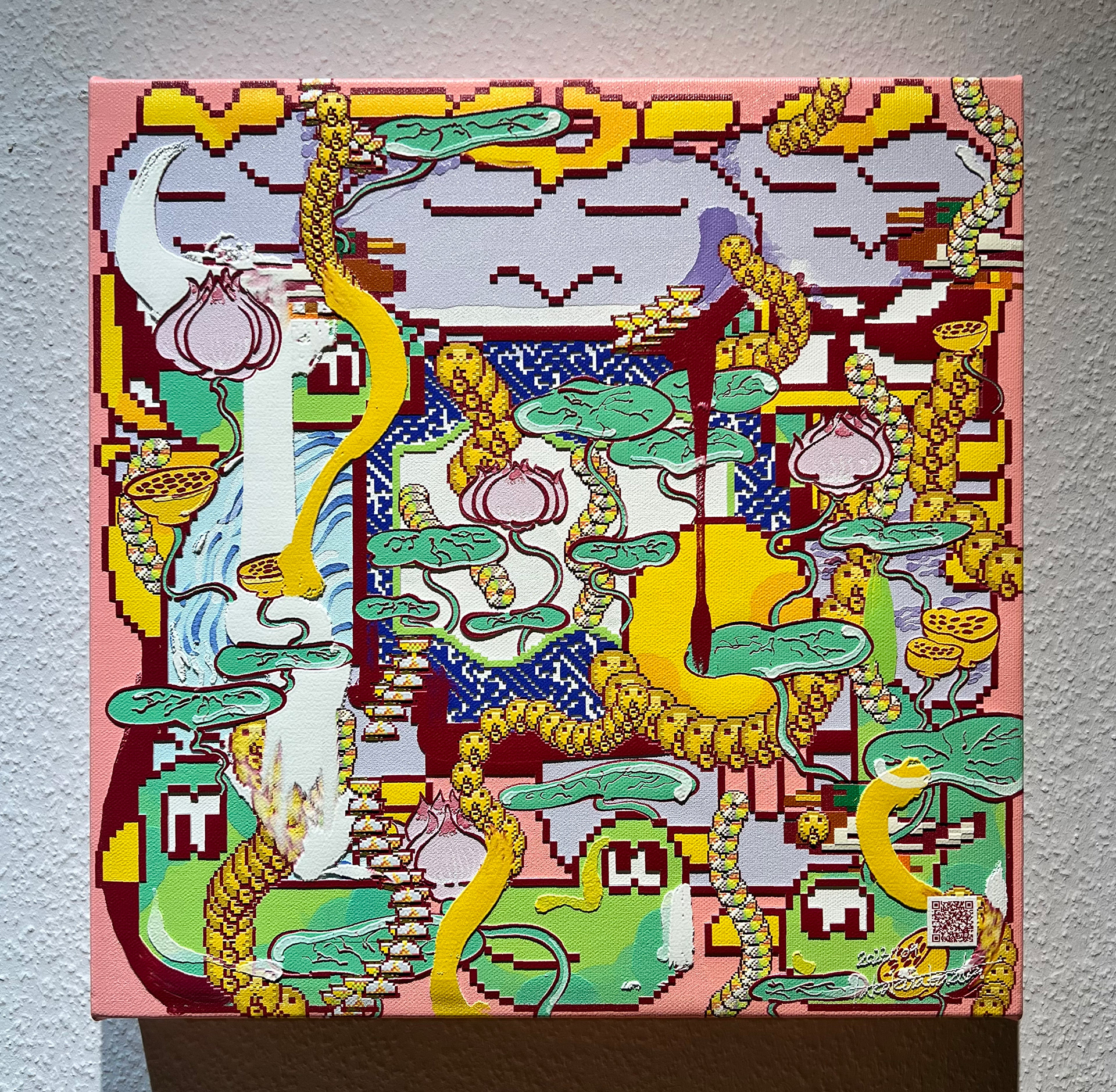 壺とそこに描かれる植物や絵文字のパターンをモチーフに、ディスプレイ表面へのUV印刷とアニメーションを連動させた作品、およびキャンバスによる平面作品のシリーズ。