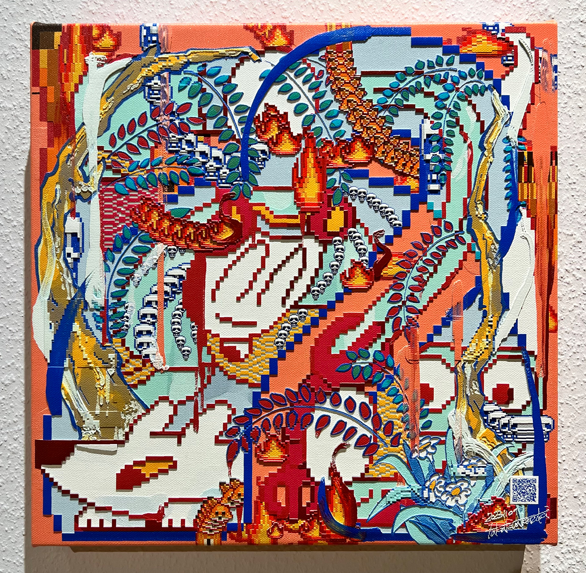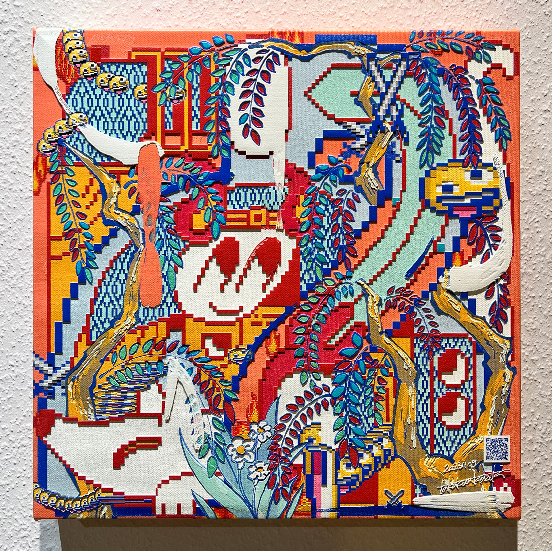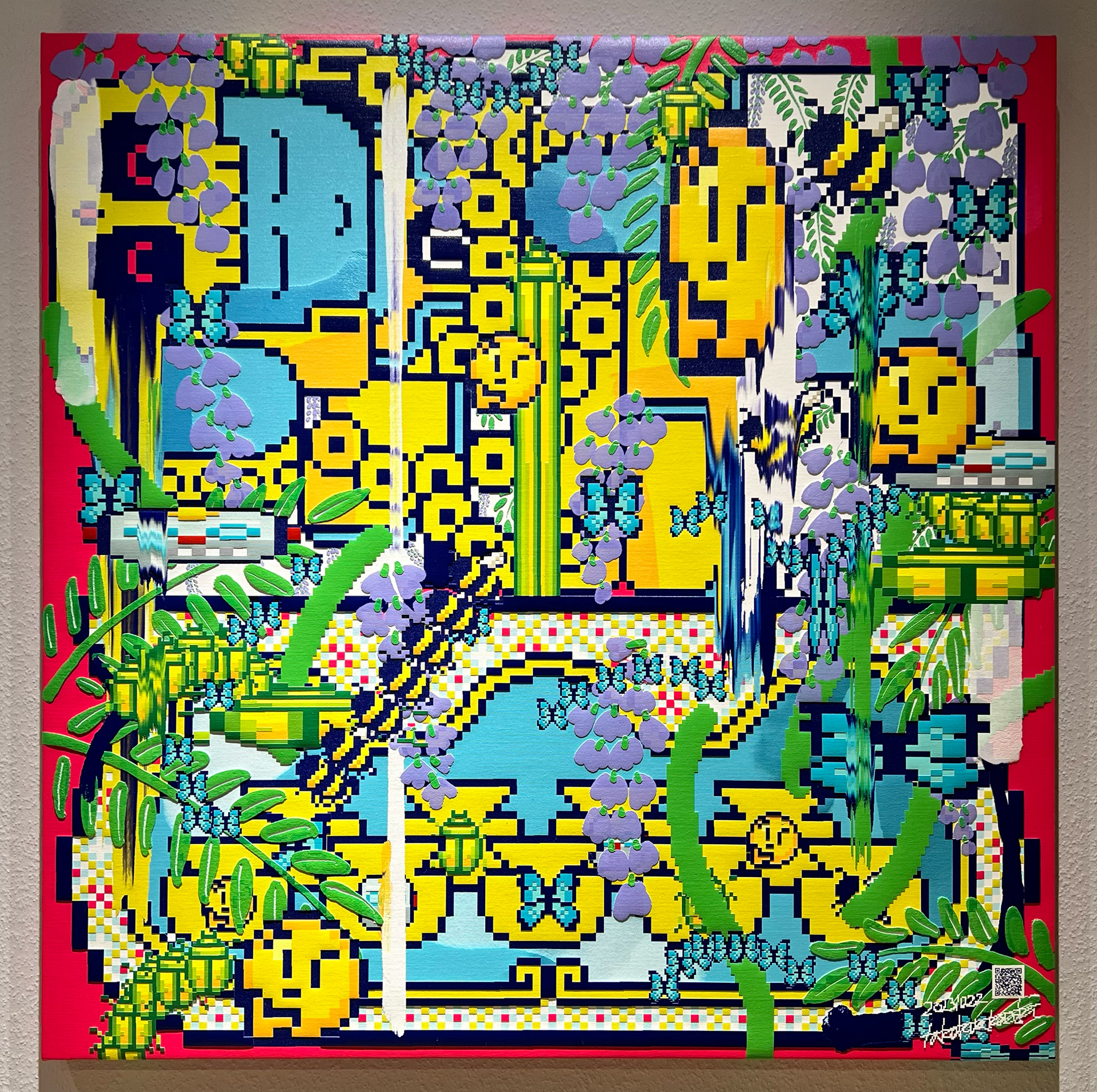 壺とそこに描かれる植物や絵文字のパターンをモチーフに、ディスプレイ表面へのUV印刷とアニメーションを連動させた作品、およびキャンバスによる平面作品のシリーズ。
