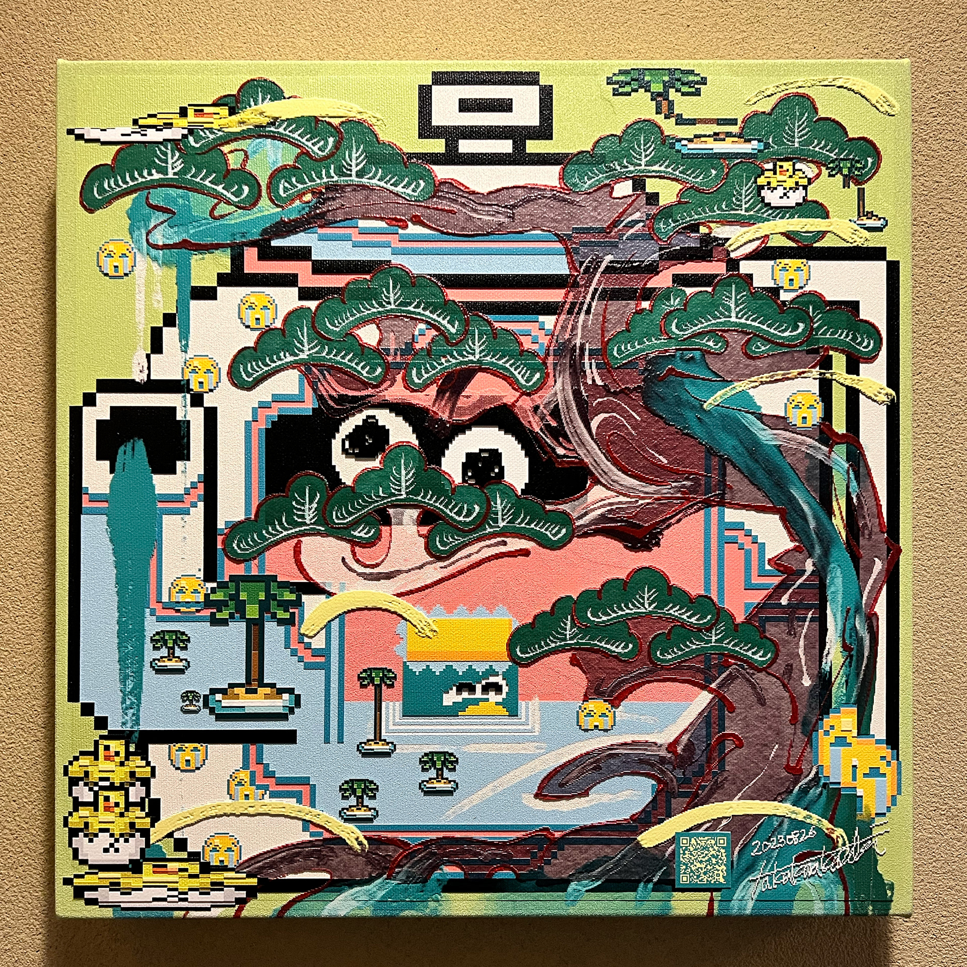 台湾の故宮博物館に訪れたことをきっかけに、日本の陶芸や日本画に見られるモチーフと朝鮮半島や中国大陸から伝来した陶芸との関係性について考えた『壺』をモチーフとしたシリーズ。壺の空洞性と表面に描かれた絵は、ディスプレイとしての機能とも重なる。こうした視点から壺を捉え直し、立体・ディスプレイ・キャンバスなど複数の形式で展開。2023年より制作。