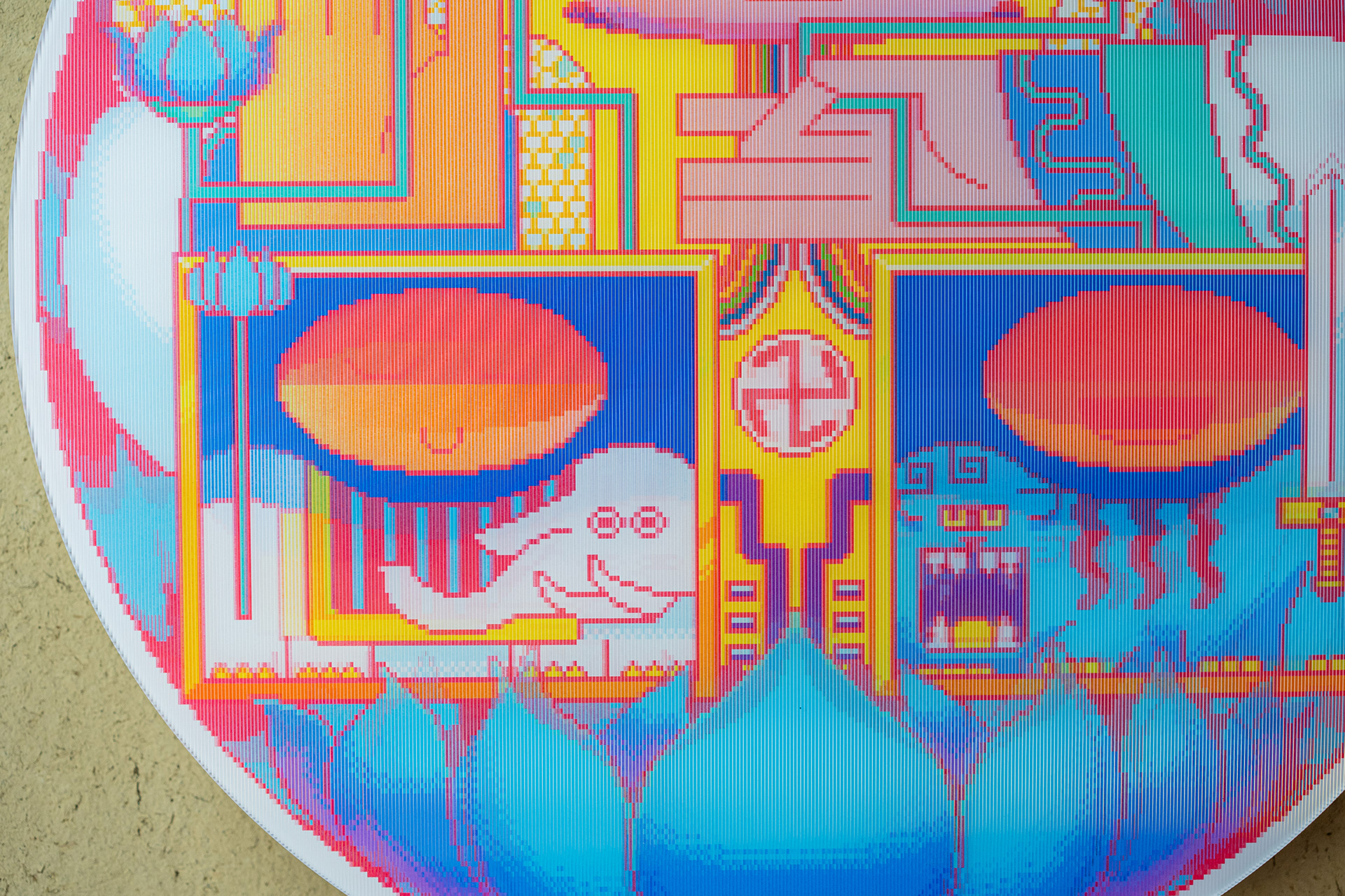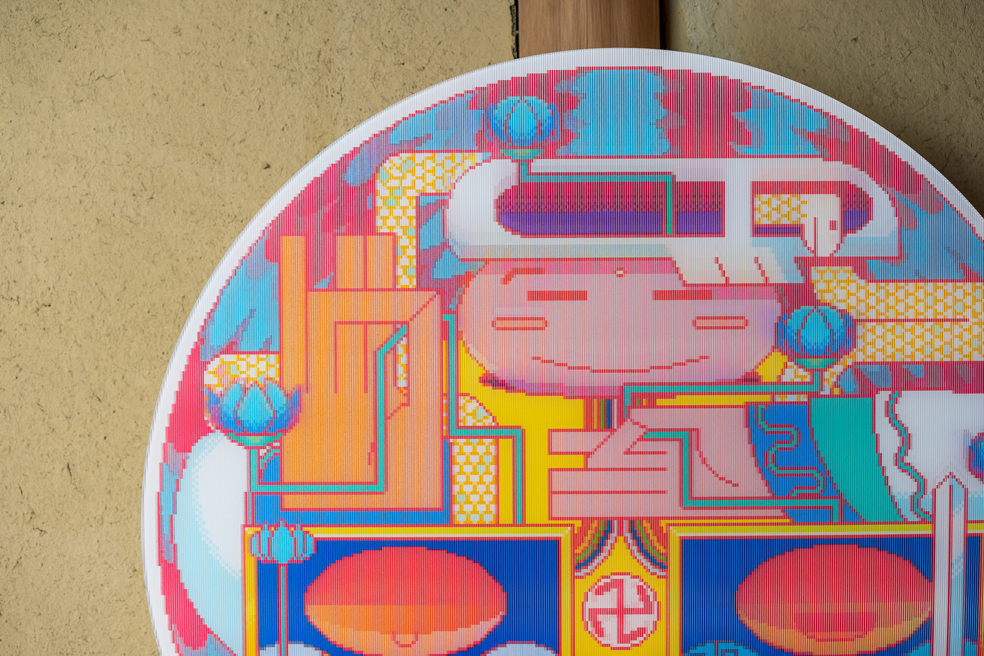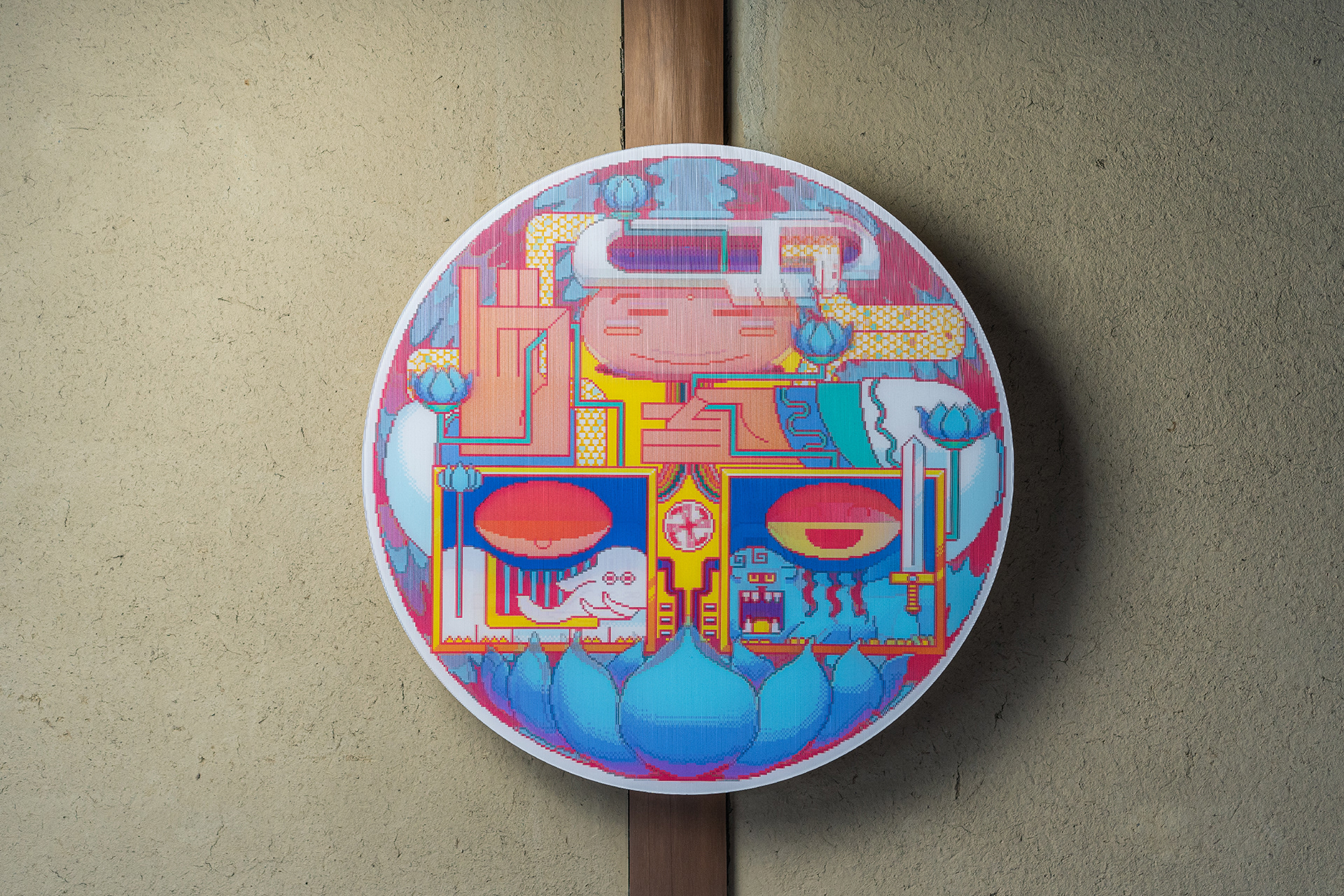 Shaka Triad employs lenticular printing to reinterpret the image of Shakyamuni in a character-like form.