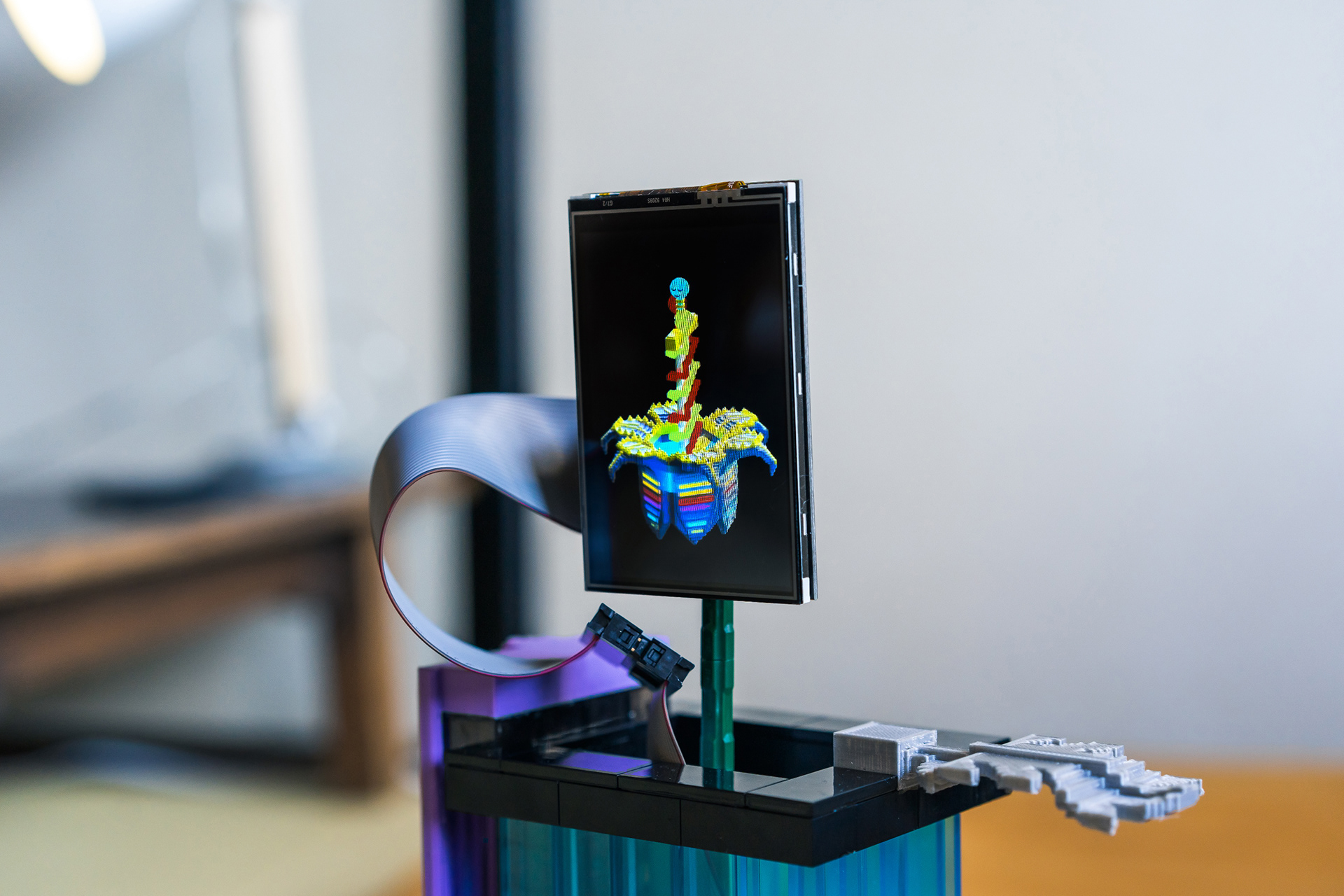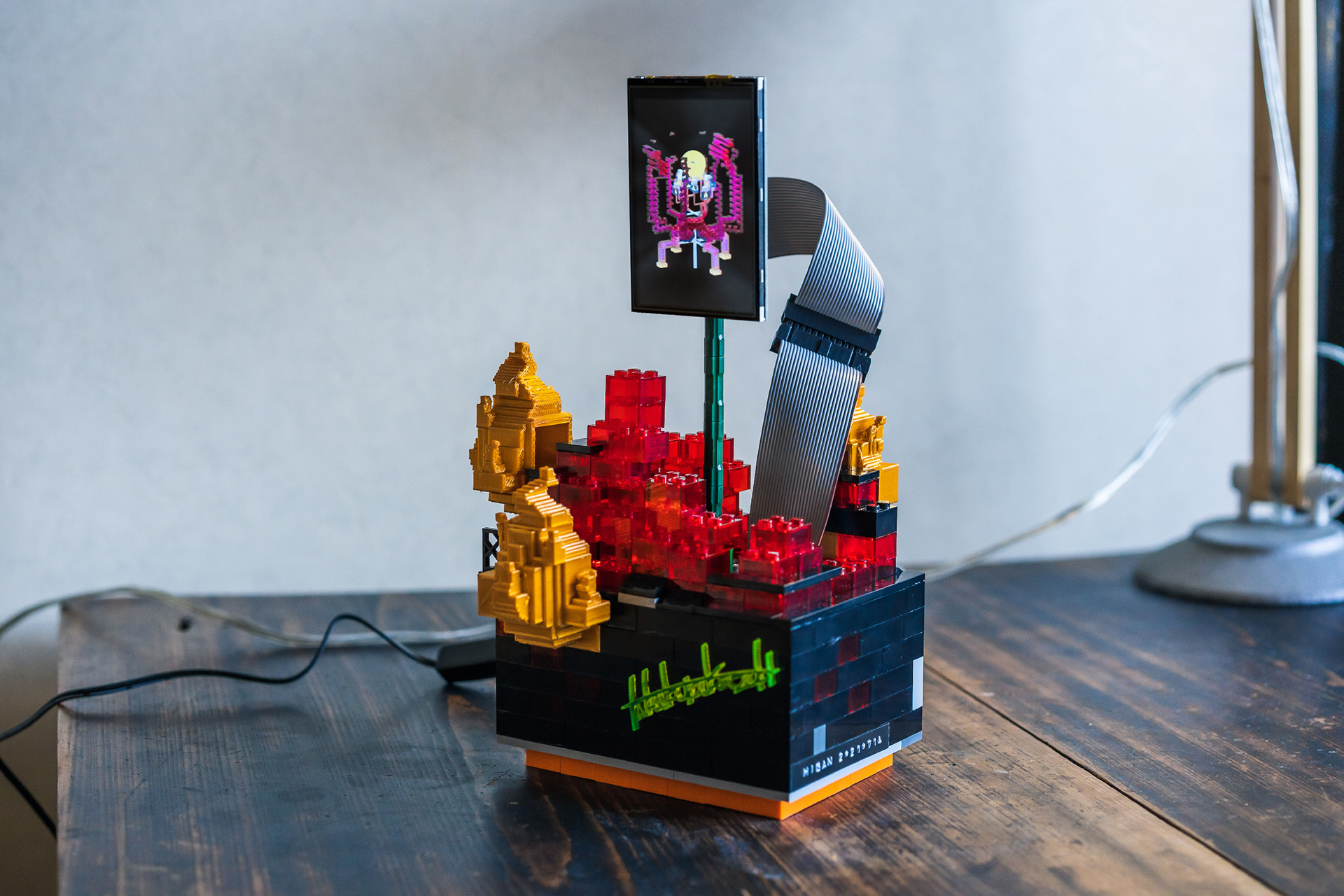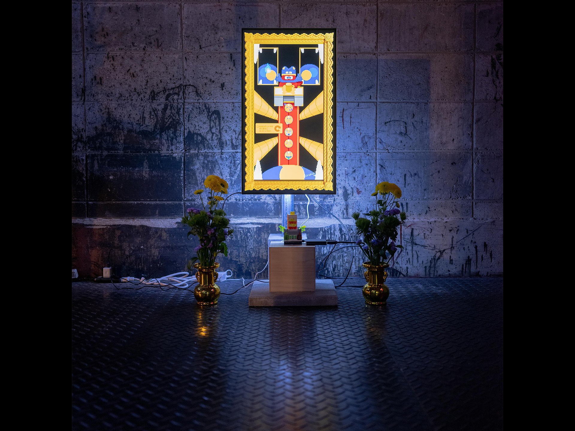 In this work, the artist replaces the tomb with hardware and the soul with software, presenting a series that examines the relationship between belief, spirit, and digital data. The “Hardware Tomb” series consists of an installation in which a USB storage device, shaped like a block-based tomb, is directly connected to a media player. Video data stored within the USB is played in real time on a display. At the same time, blockchain technology is used to certify the correspondence between the data and its physical container.