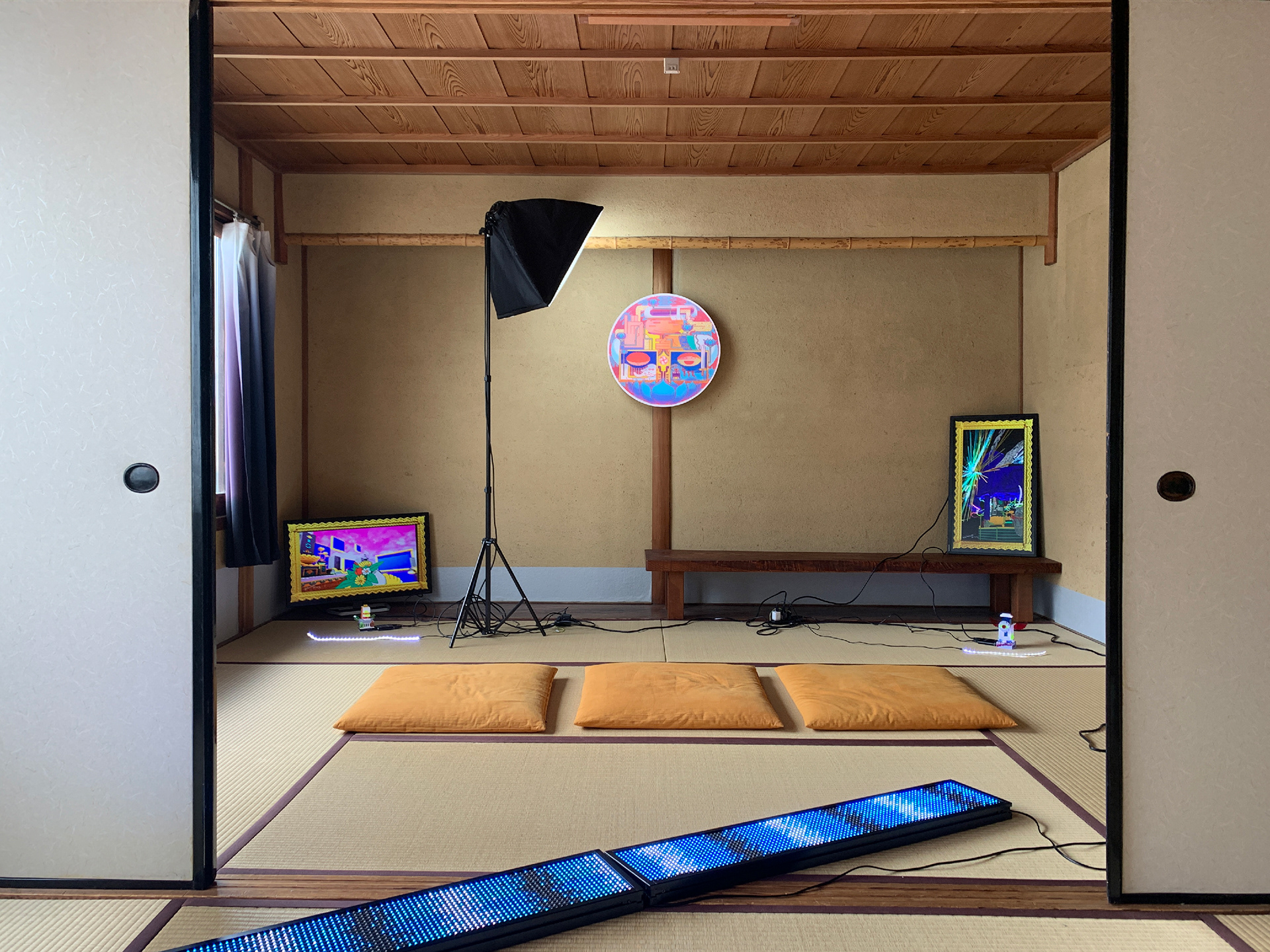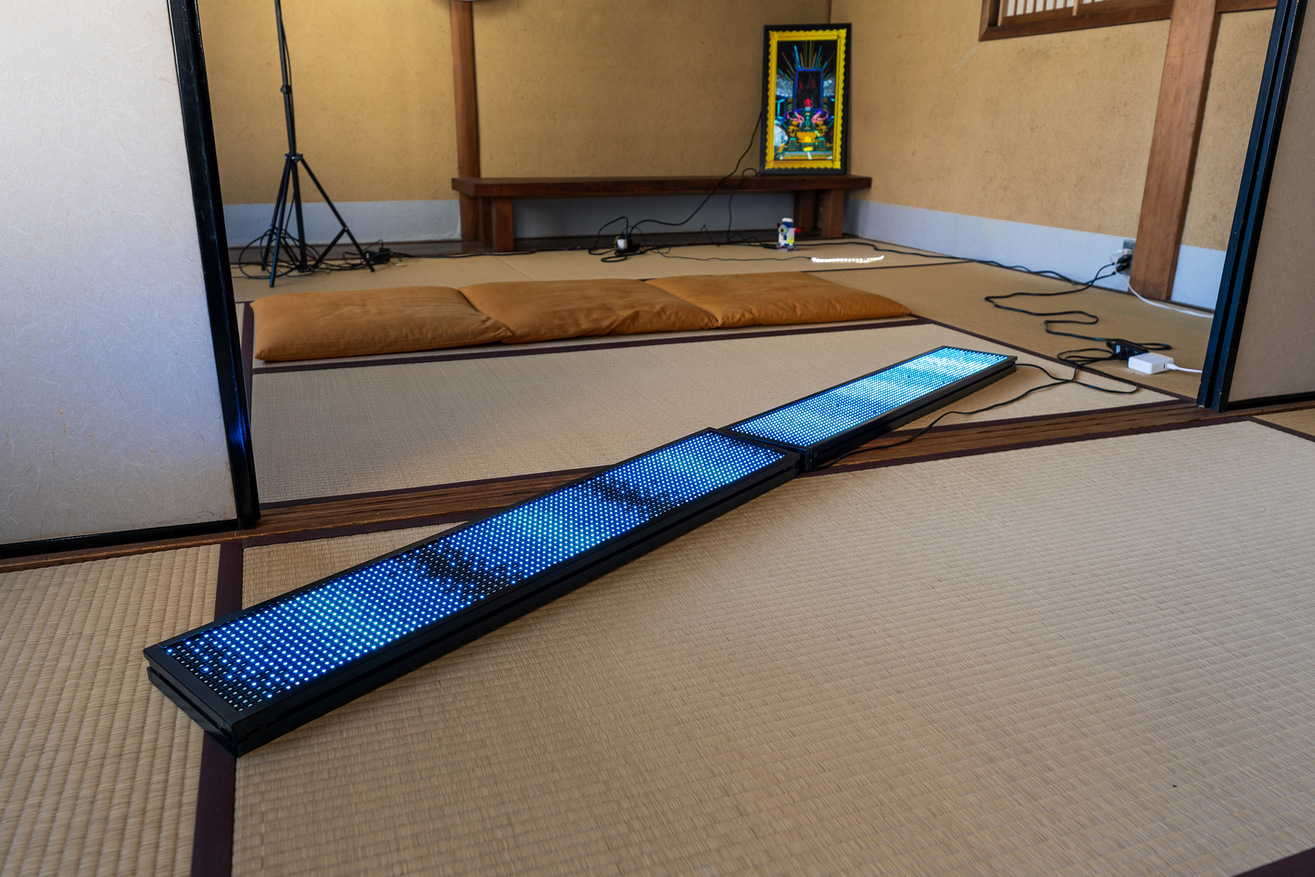 ver. 3.0 was presented in a renovated traditional townhouse space in Kyoto. The new work Portable Sanzu River attempts to differentiate the afterlife and the world of the living in Eastern thought through the inside and outside of a digital display.