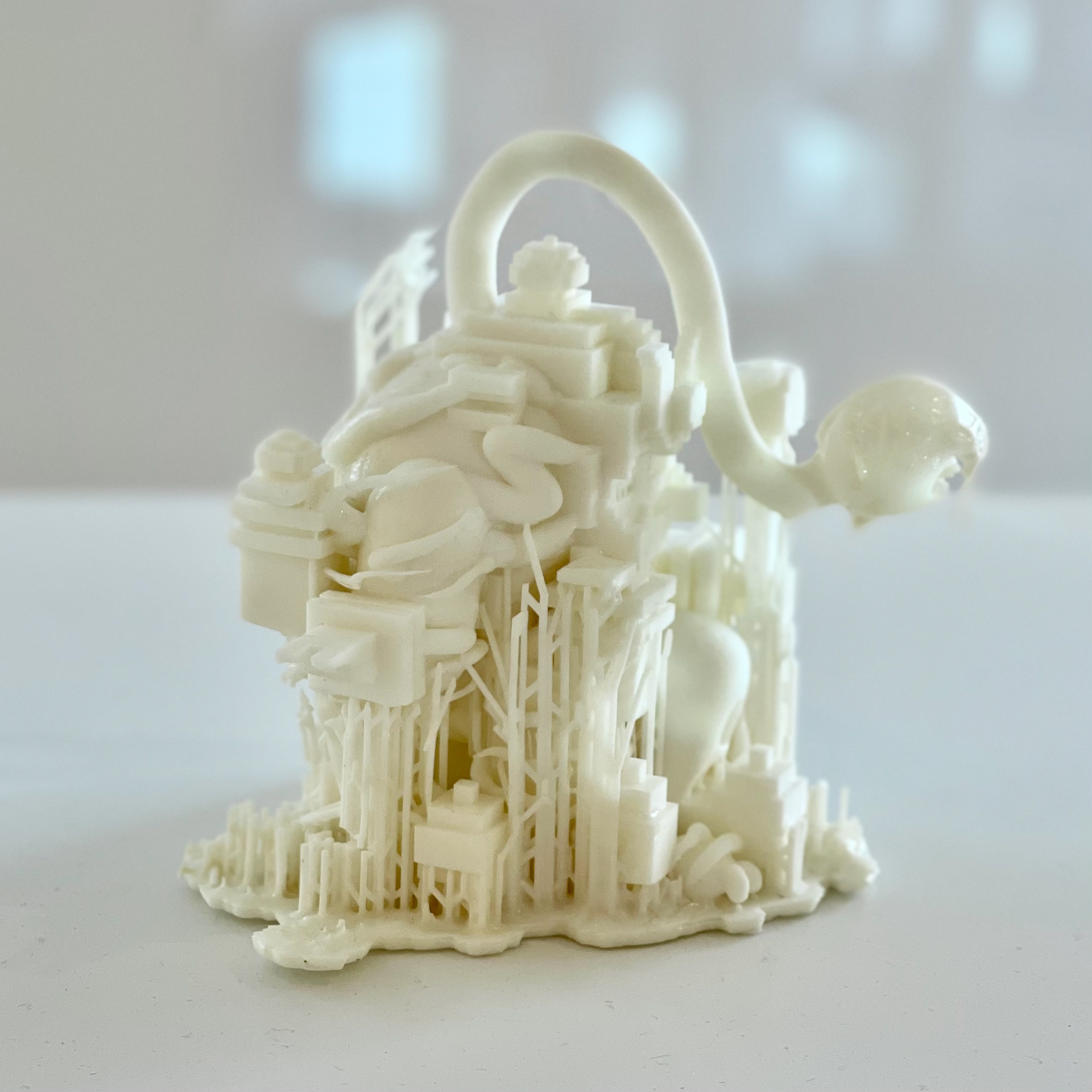 本展は、生成AIの現在的な在り方を通して、シュルレアリスムが探求してきた想像力の構造を再考する試みでもある。生成AIは、インターネット上に蓄積された人類の膨大なアーカイブから人間とは異なる想像力によってイメージを生成する。そのプロセスは、個人の無意識と集合的記憶のあいだを往復してきたシュルレアリスムの方法論と、構造的に重なっている。本展では、作者・鑑賞者・AIという三者の想像力を並列に配置し、「存在しない存在」としての妖怪を生成・公開する。たかくらの作風を継承したAIによって生み出される妖怪は、想像力が個人に帰属するものではなく、分散し共有されうるものであることを示す存在として提示される。