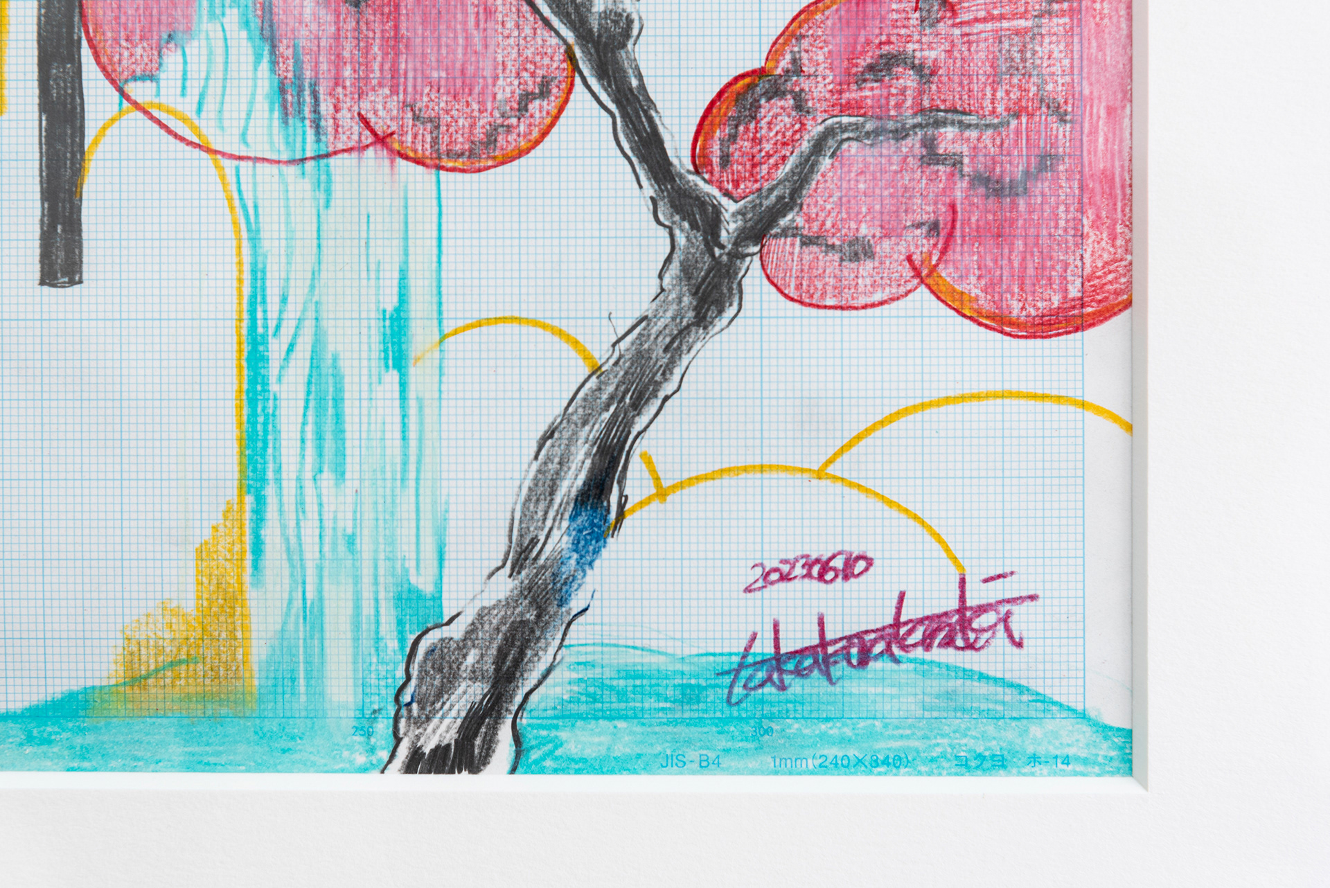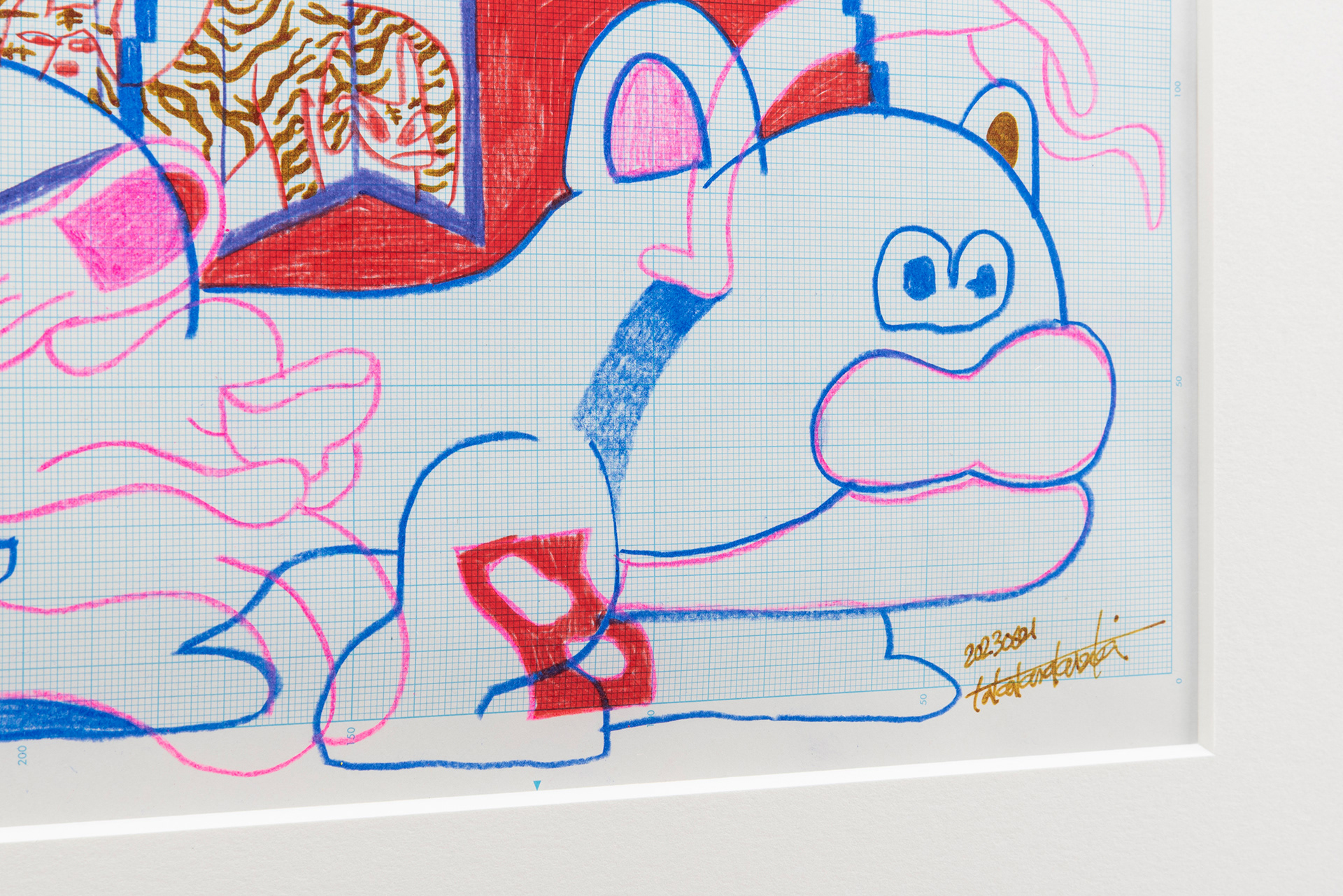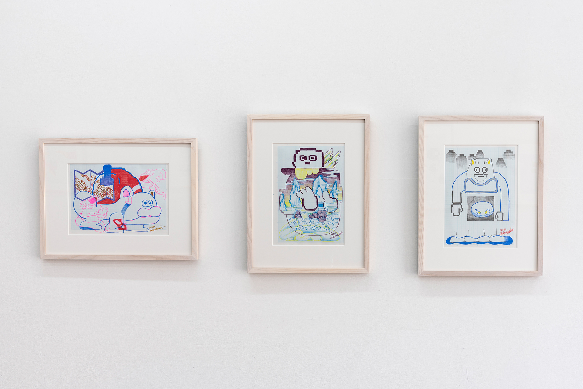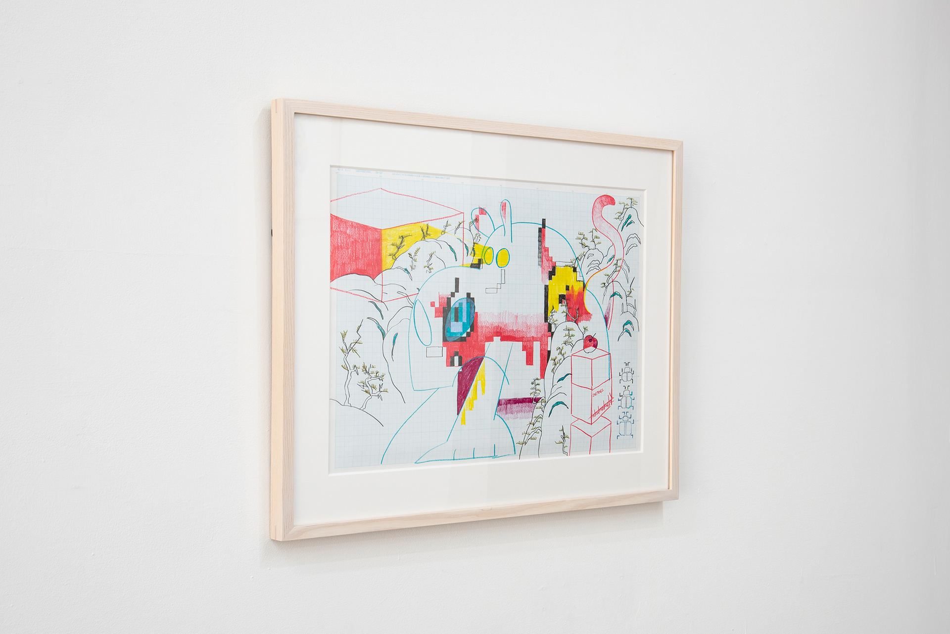 This exhibition marks the first solo exhibition by Takakurakazuki composed exclusively of drawings. The exhibited works were created by selecting motifs from an archive of yōkai generated collaboratively by viewers and AI in AI Yokai Summoning Ritual, and rendering them as colored-pencil drawings on drafting grid paper. This method of production is rooted in the early history of video games, when pixel art was designed through drawings made on grid paper. The exhibition title, Good Night, the Leftovers of Our Dreams, is constructed as a following verse (7–7) to AI Yokai Summoning Ritual (5–7–5), positioning the exhibition as a single, continuous poetic structure.