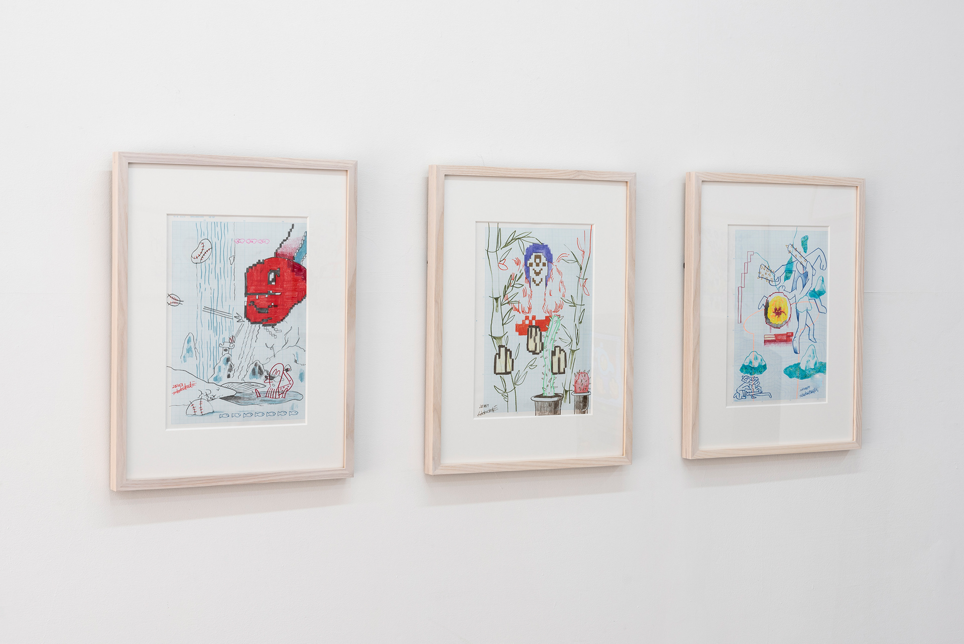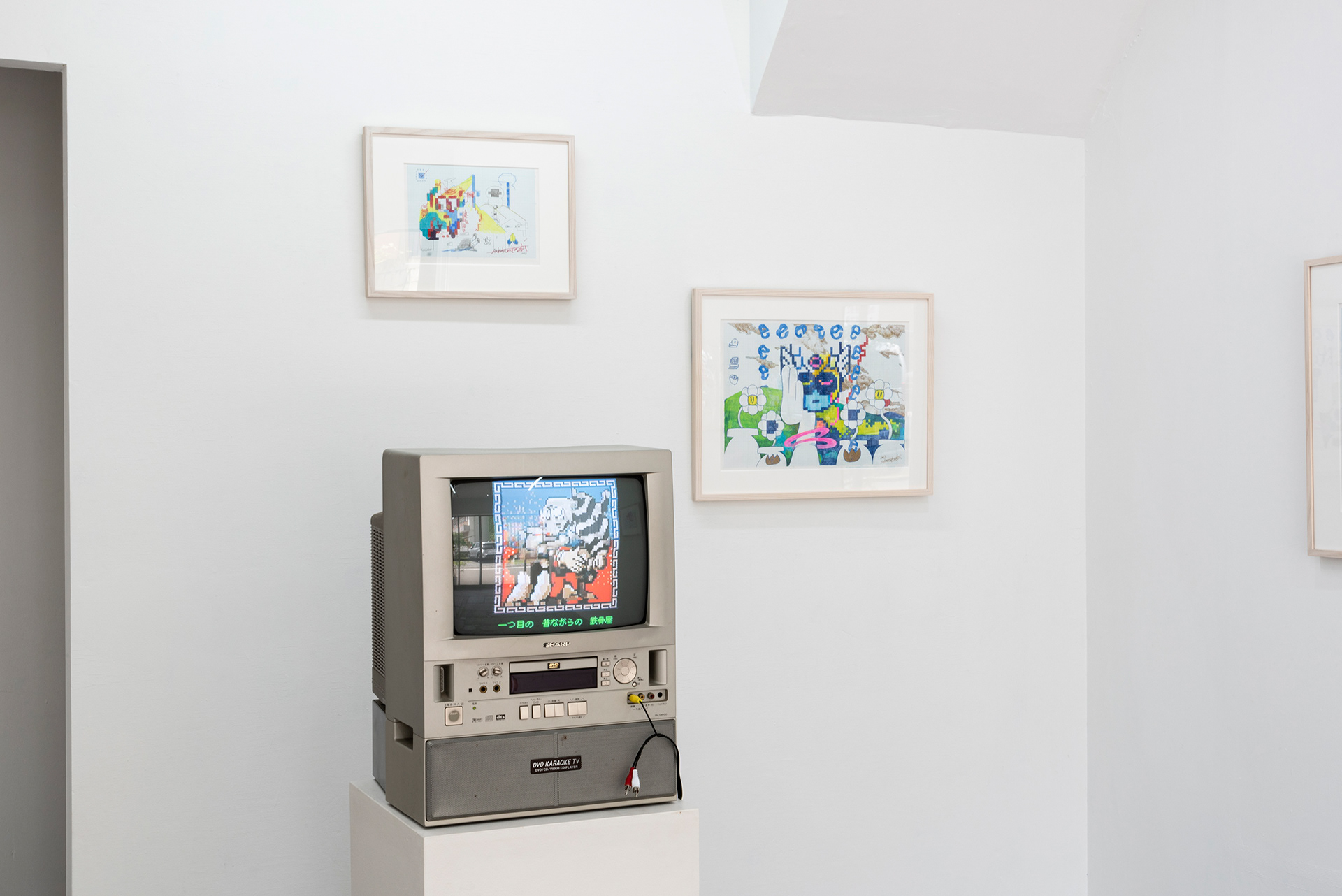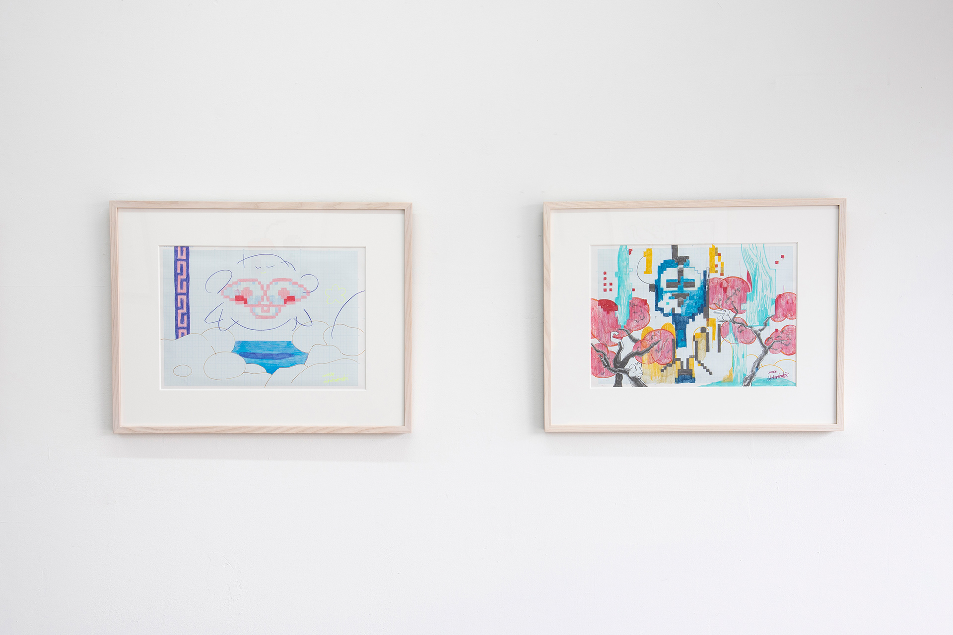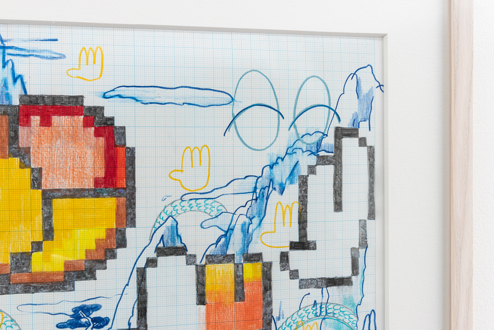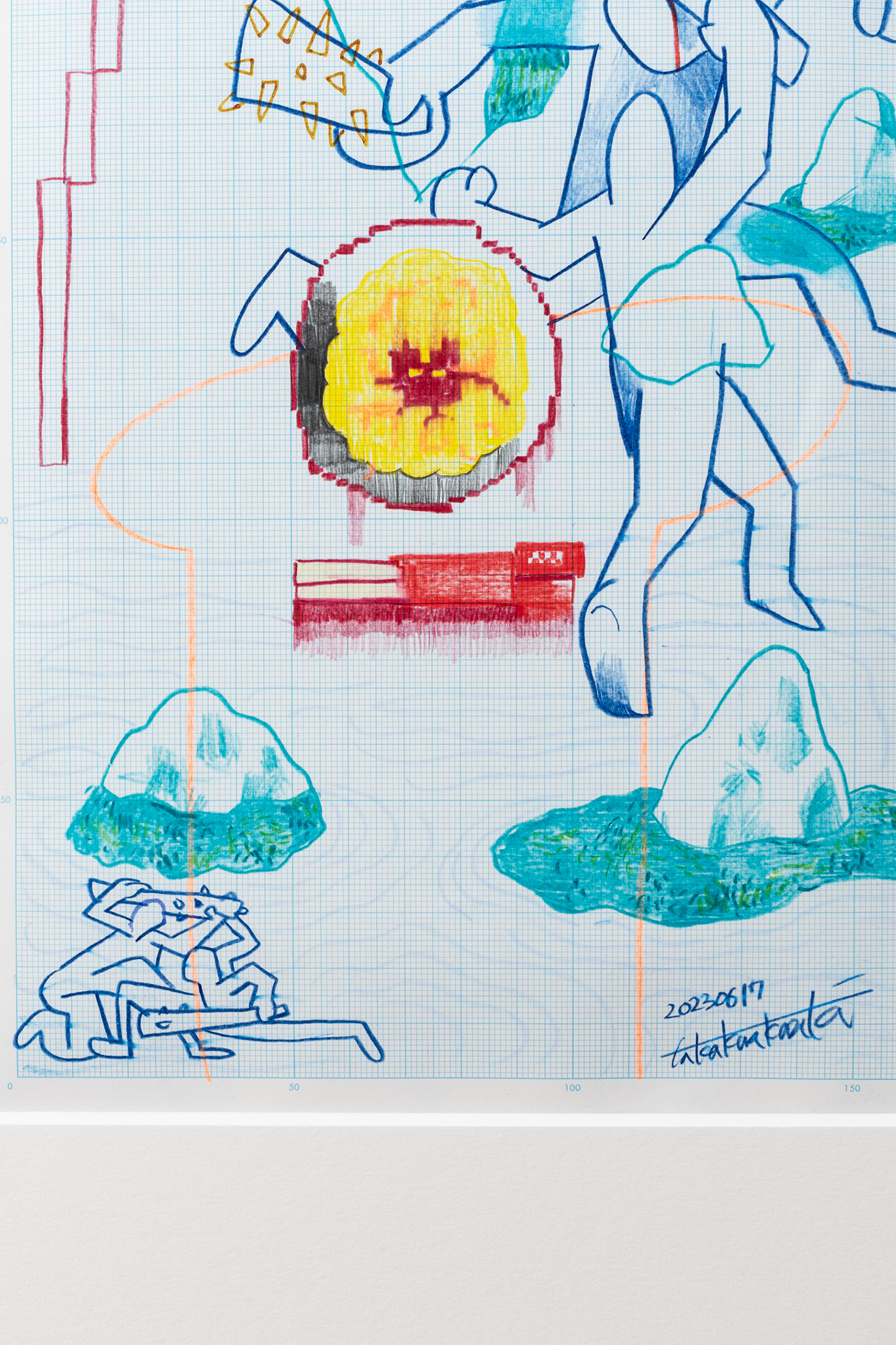 This exhibition marks the first solo exhibition by Takakurakazuki composed exclusively of drawings. The exhibited works were created by selecting motifs from an archive of yōkai generated collaboratively by viewers and AI in AI Yokai Summoning Ritual, and rendering them as colored-pencil drawings on drafting grid paper. This method of production is rooted in the early history of video games, when pixel art was designed through drawings made on grid paper. The exhibition title, Good Night, the Leftovers of Our Dreams, is constructed as a following verse (7–7) to AI Yokai Summoning Ritual (5–7–5), positioning the exhibition as a single, continuous poetic structure.