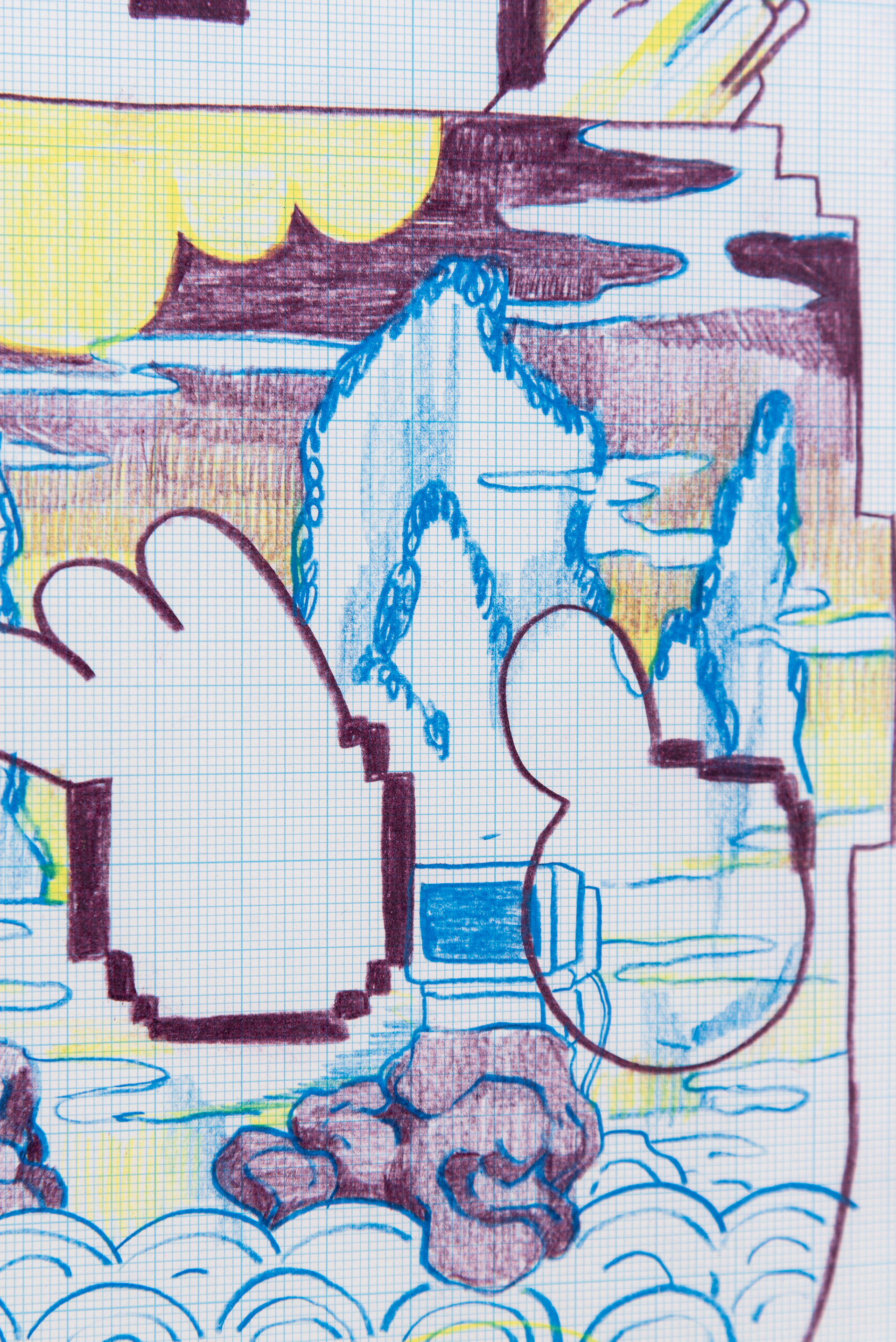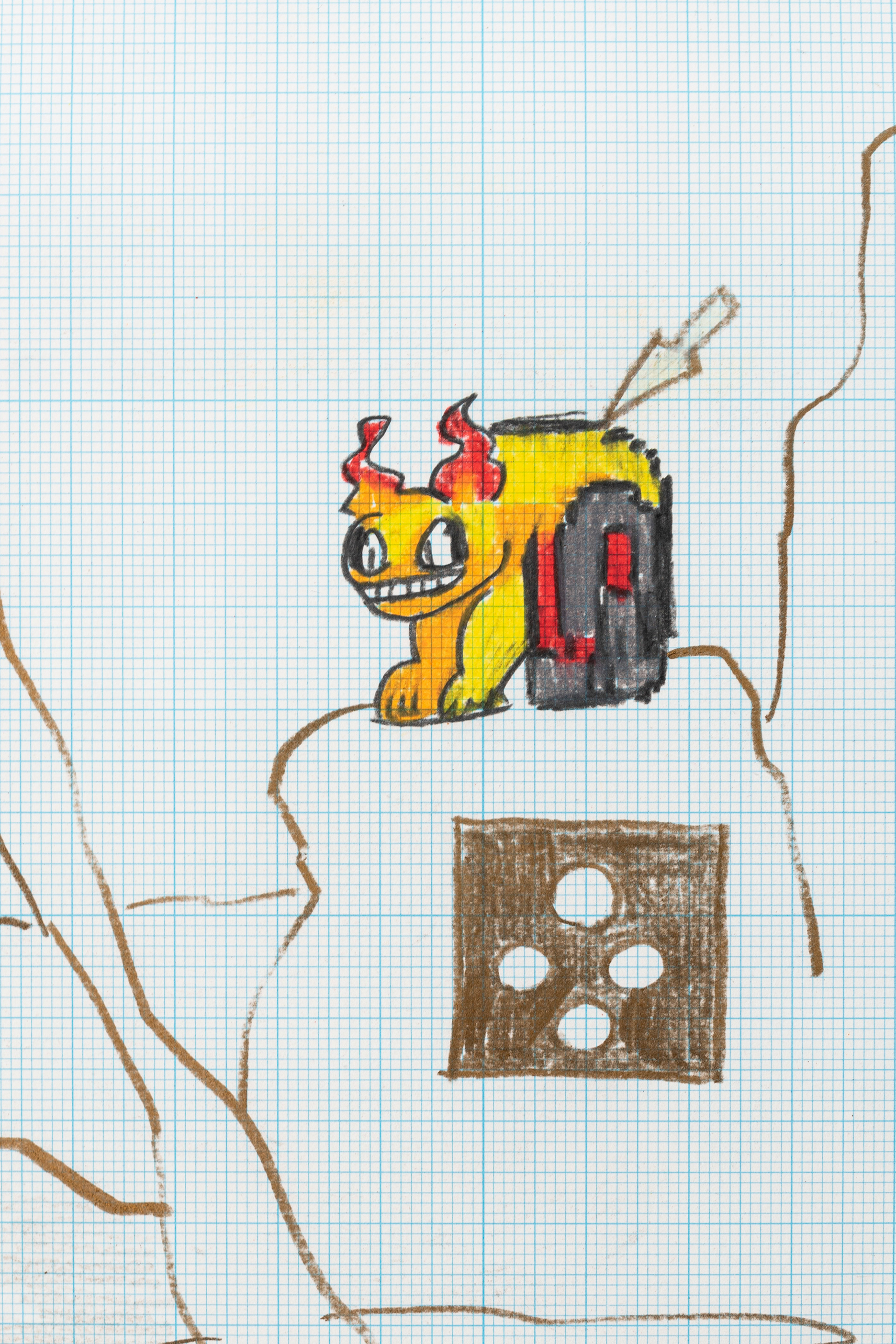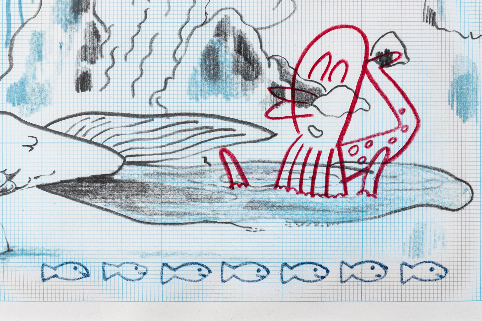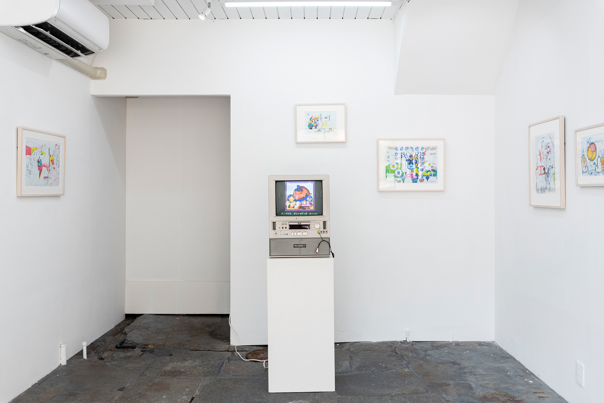 This exhibition marks the first solo exhibition by Takakurakazuki composed exclusively of drawings. The exhibited works were created by selecting motifs from an archive of yōkai generated collaboratively by viewers and AI in AI Yokai Summoning Ritual, and rendering them as colored-pencil drawings on drafting grid paper. This method of production is rooted in the early history of video games, when pixel art was designed through drawings made on grid paper. The exhibition title, Good Night, the Leftovers of Our Dreams, is constructed as a following verse (7–7) to AI Yokai Summoning Ritual (5–7–5), positioning the exhibition as a single, continuous poetic structure.