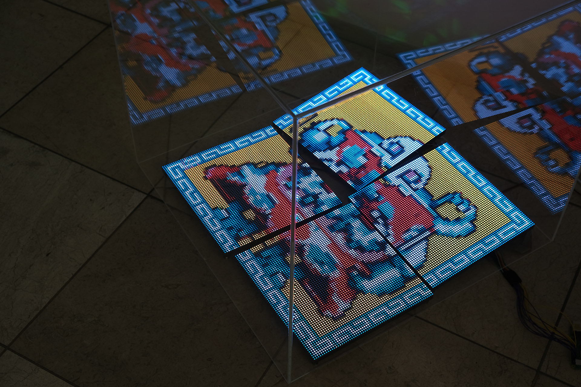 A giant robot made of many broken smartphones pronounces many languages. Balloon-shaped souls erupt from the broken smartphone screens, changing shape and bursting. A robot sits on a cloud and beams lasers at humanity, and another robot sends symbols via wifi as it flips around the outside of the earth. Every robot has six legs and owns a phone number.